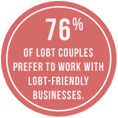 Seemingly simple things such as understanding terms like honor attendants and wedding party to distinctions with regards to engagement rings and aisles that prove to be significant to same-sex couples, as well as having customized literature and LGBTQ+ friendly logos. Sponsoring, donating and promoting LGBTQ+ organizations, content, causes and events that also demonstrate that your business is a supporter of marriage equality.