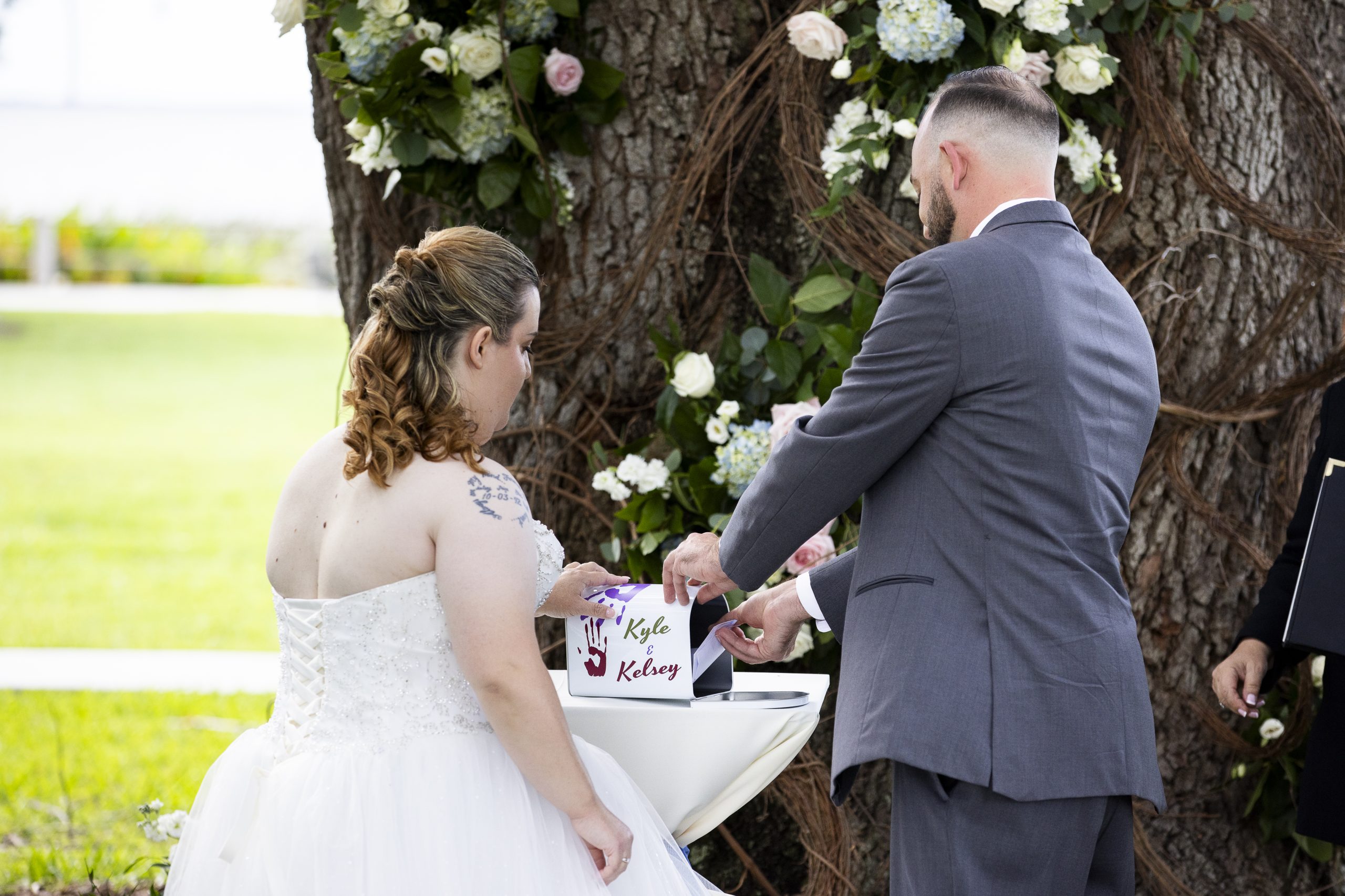 Kelsey and Kyle infused their personalities into the ceremony, making it completely their own. In addition to exchanging rings and vows, they also had a special Disney-themed unity ceremony, where they tucked their vows into an Up-inspired mailbox with their names and handprints on it. Then, they sealed their pledges of love to one another with a pinky promise and a kiss!