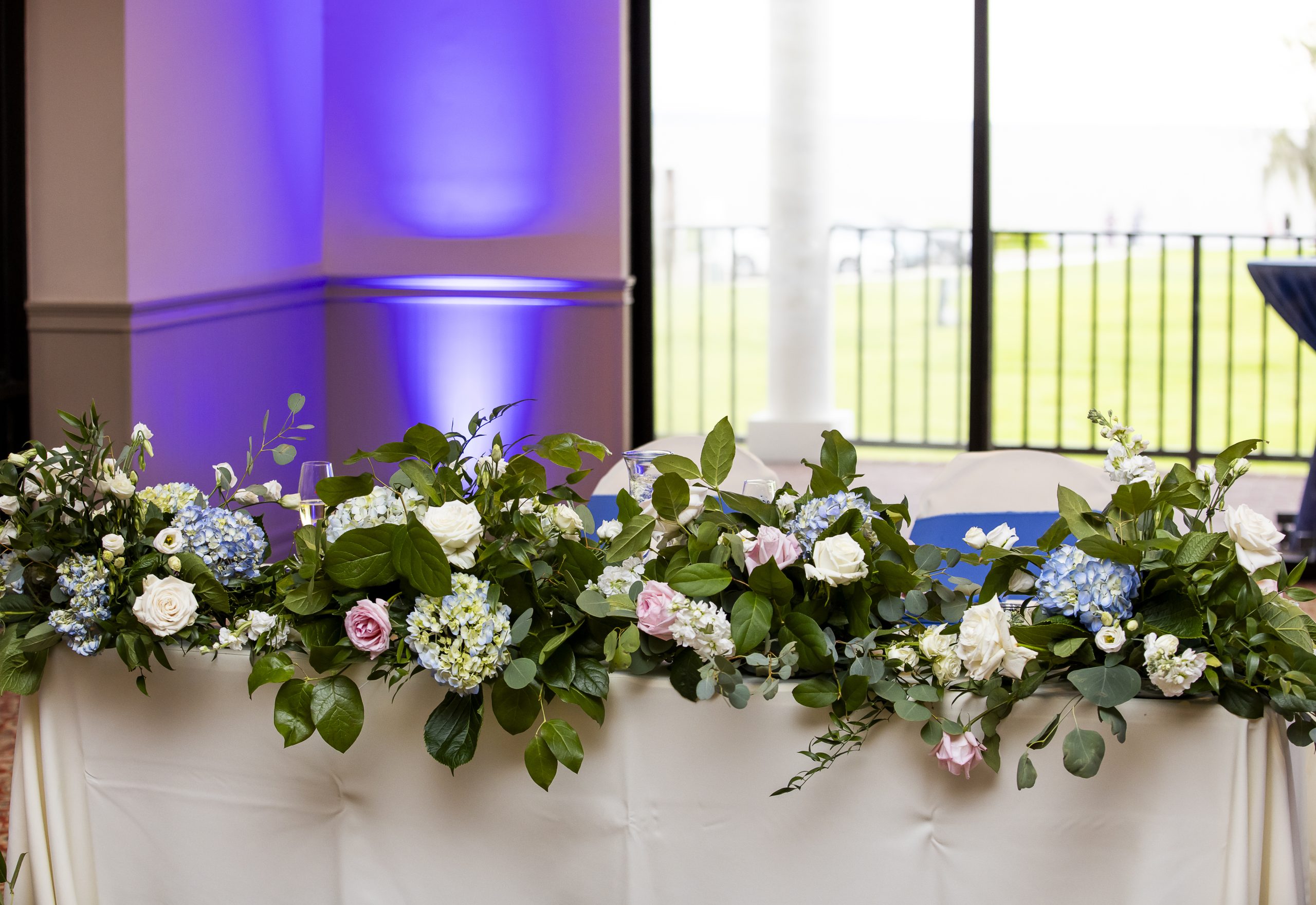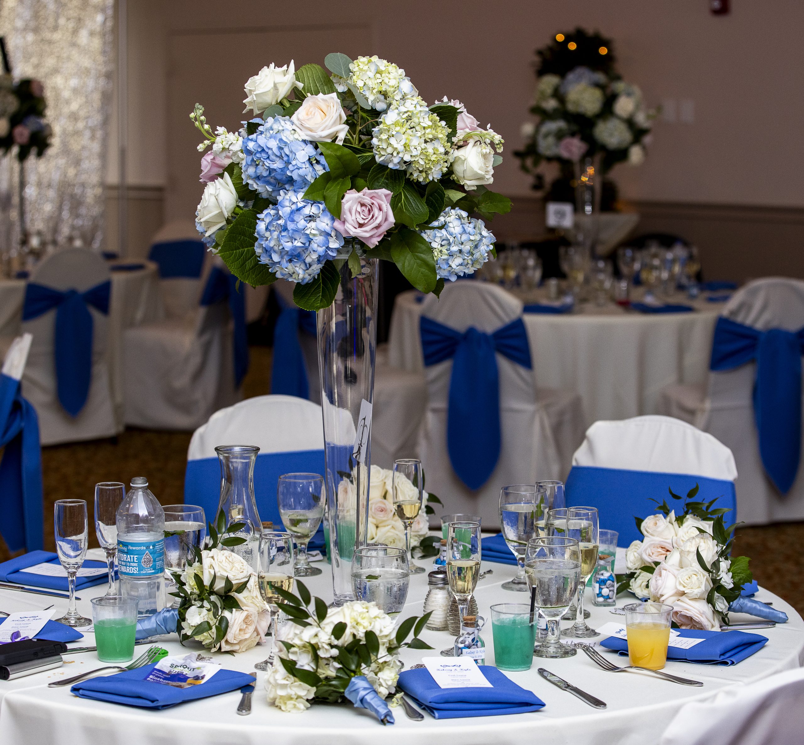 This is why we’ve developed our all-inclusive wedding packages: To make wedding planning fun! Simply book one of our packages and have your entire wedding done in one move. One of our John Michael Events’ couples, Kelsey and Kyle, took full advantage of one of our all-inclusive Diamond wedding packages for their blue and white wedding. They worked closely with our team to customize their package to curate the blue and white wedding day they had always dreamt about.