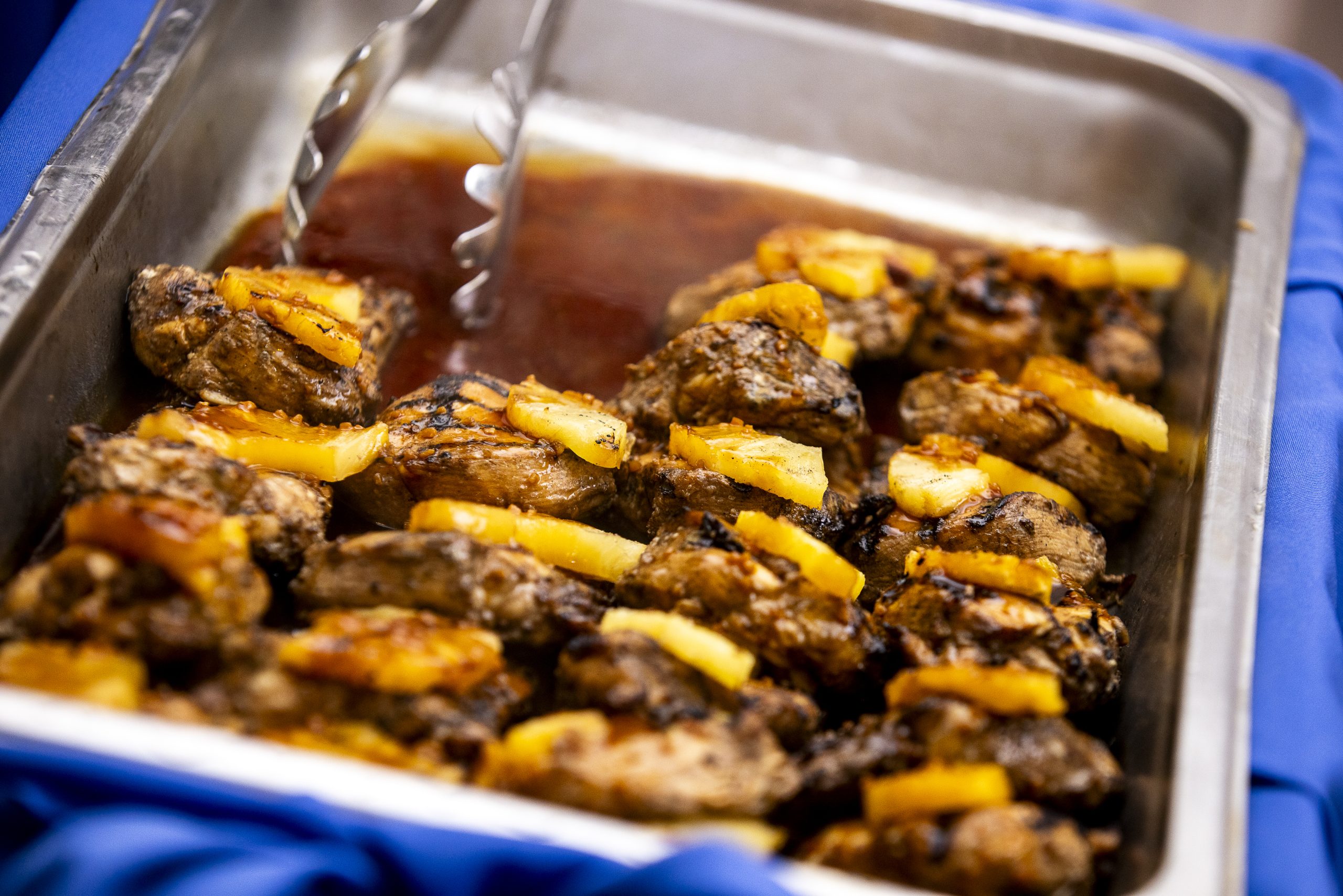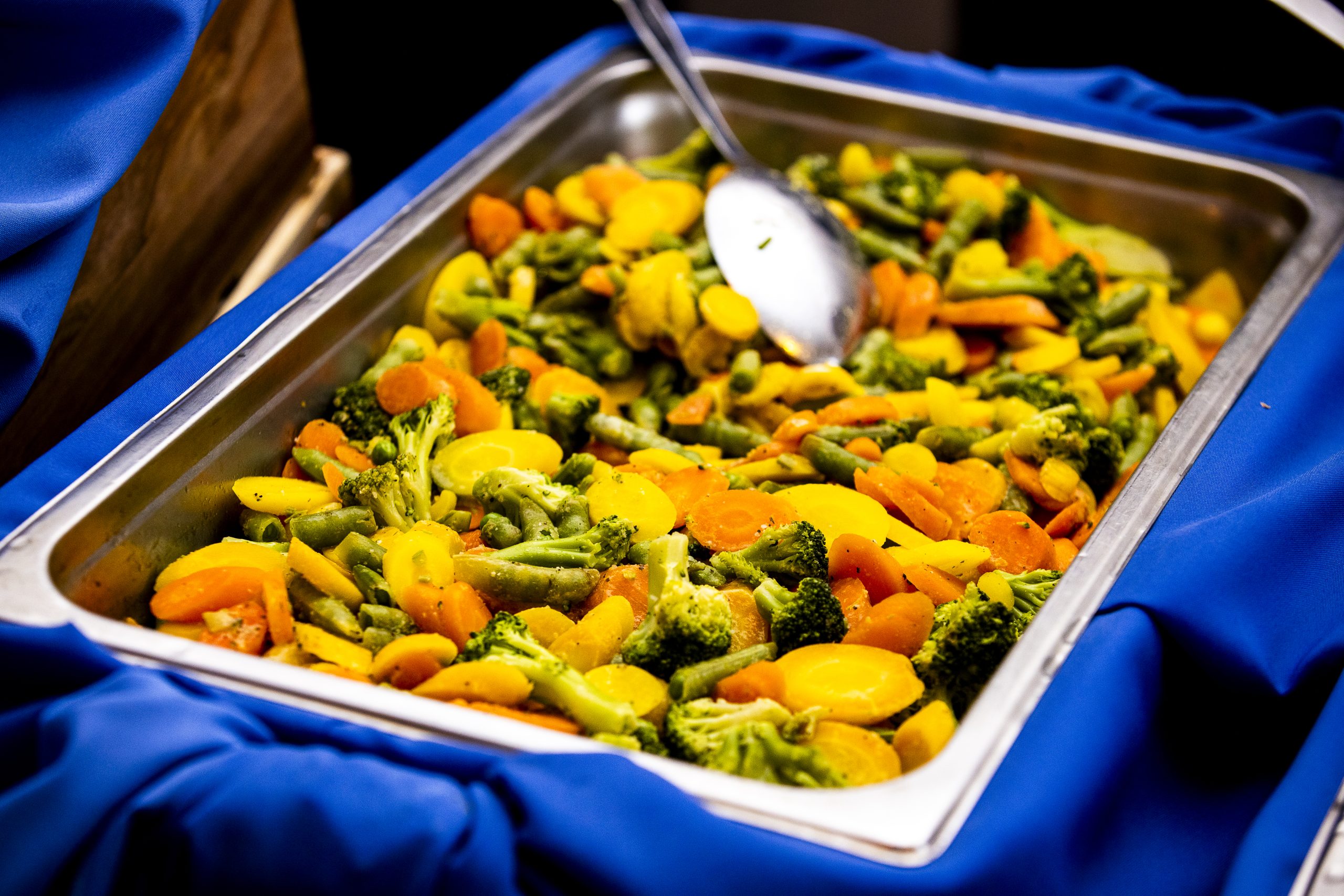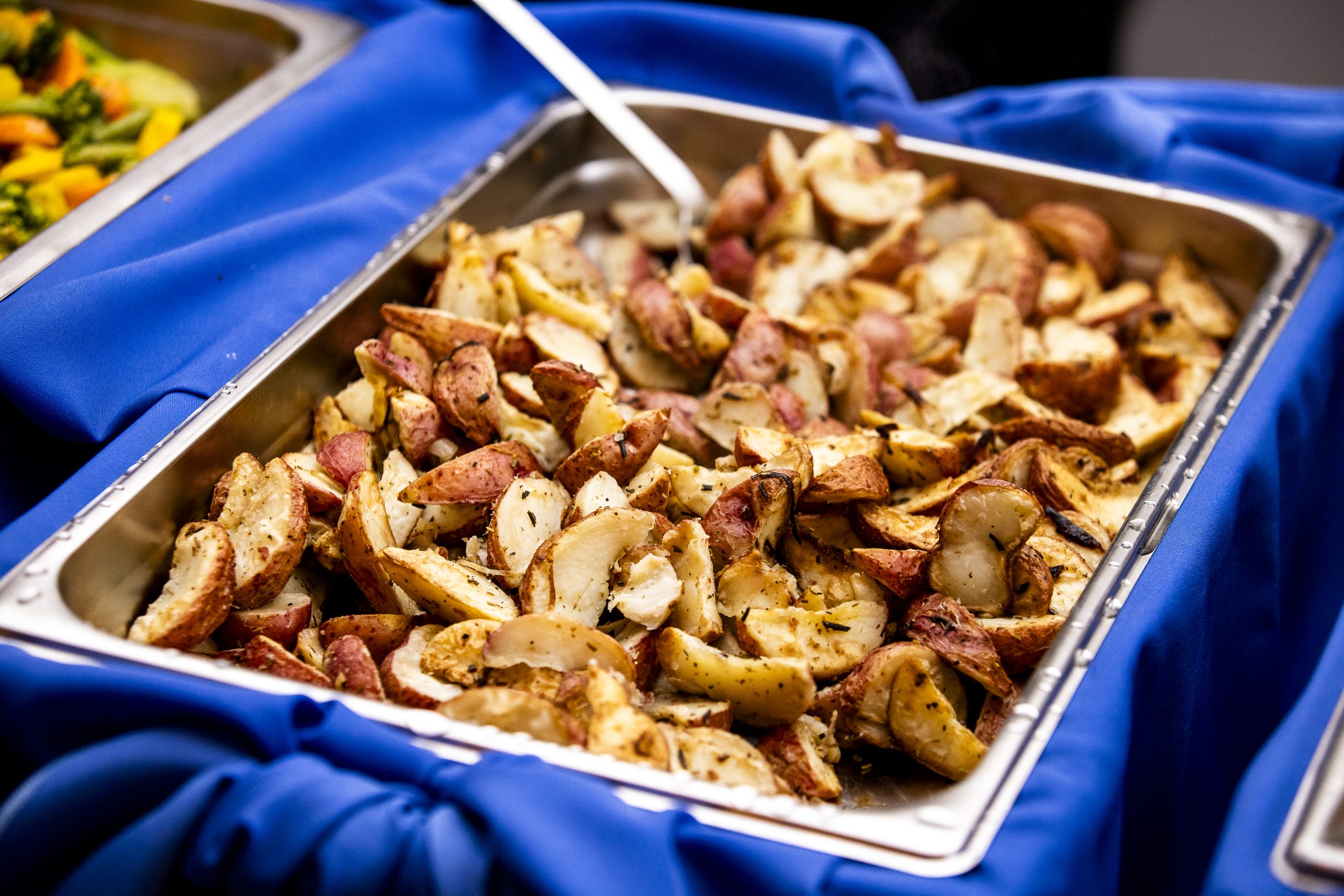 After the introductions, first dance, and toasts, we opened the dinner buffet! That evening, we served a delicious meal of: