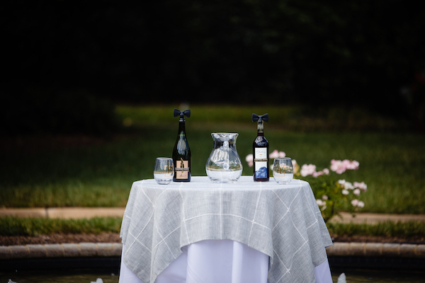 The late afternoon outdoor wedding ceremony incorporated a wine ceremony and the grooms were surrounded with sixty family members and friends as they exchanged their wedding vows.