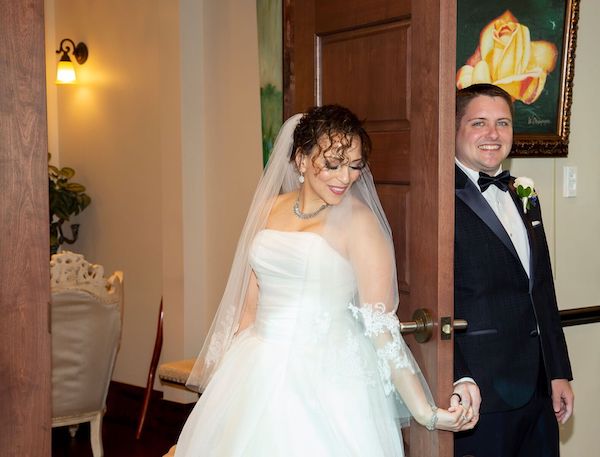 After all of the preparations were in place, Farrah and Darren had a ‘First Touch” rather than seeing each other. Standing on either side of a door they were able to hold hands and share a few words.