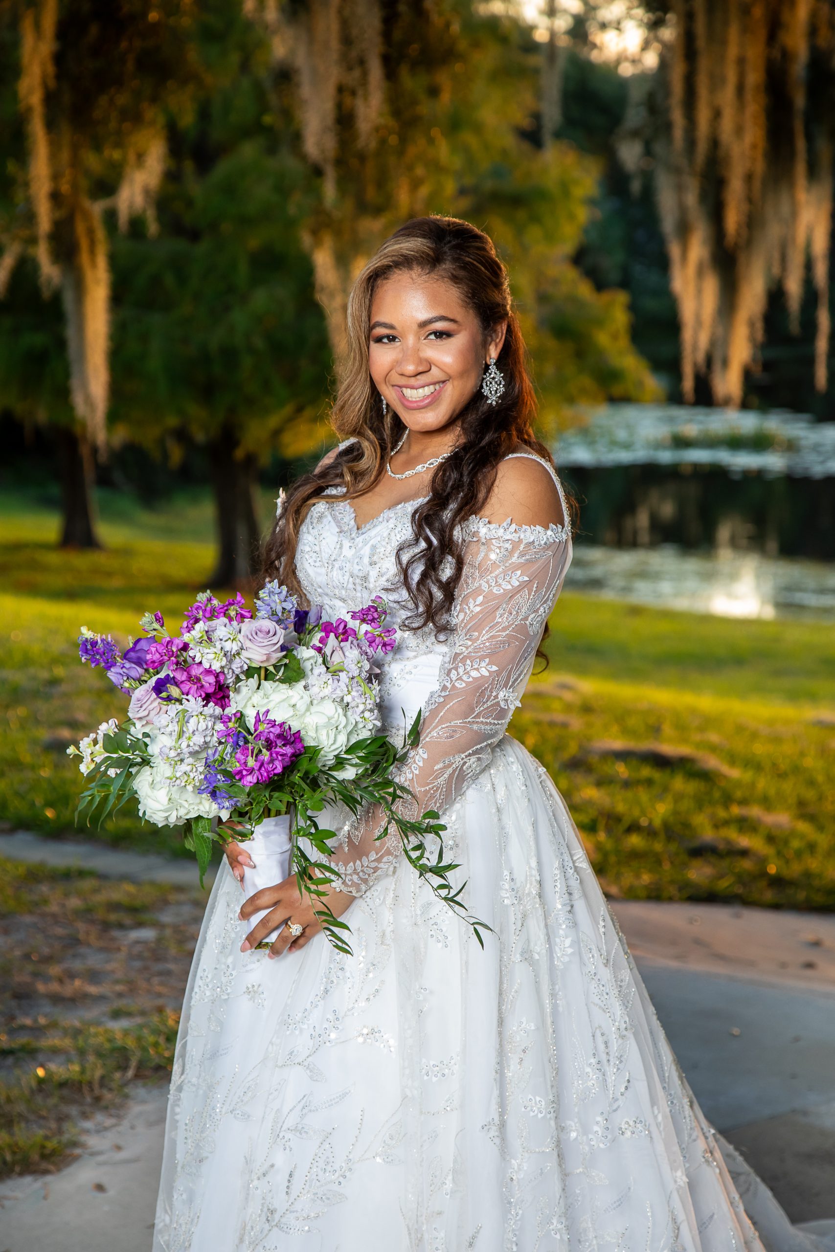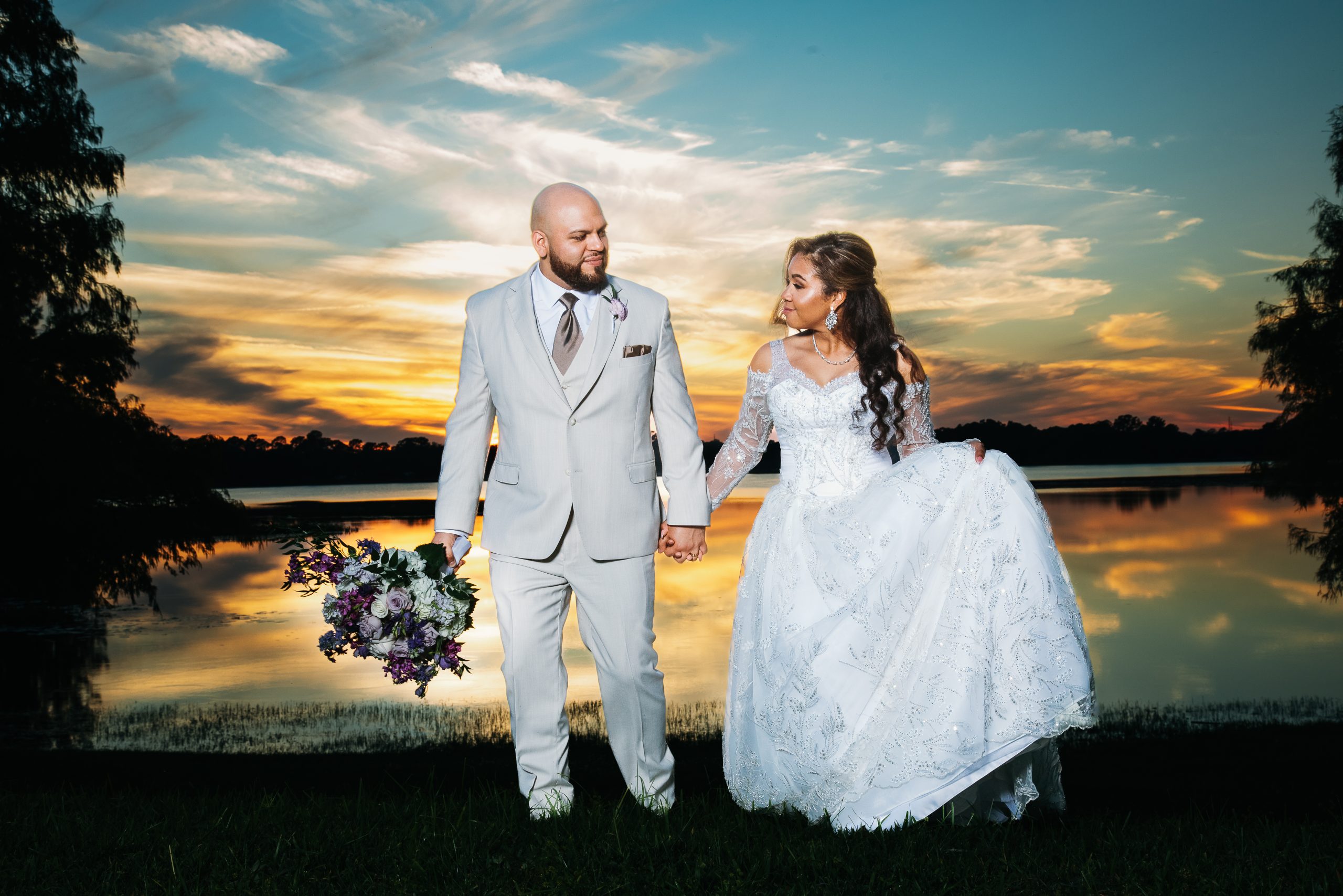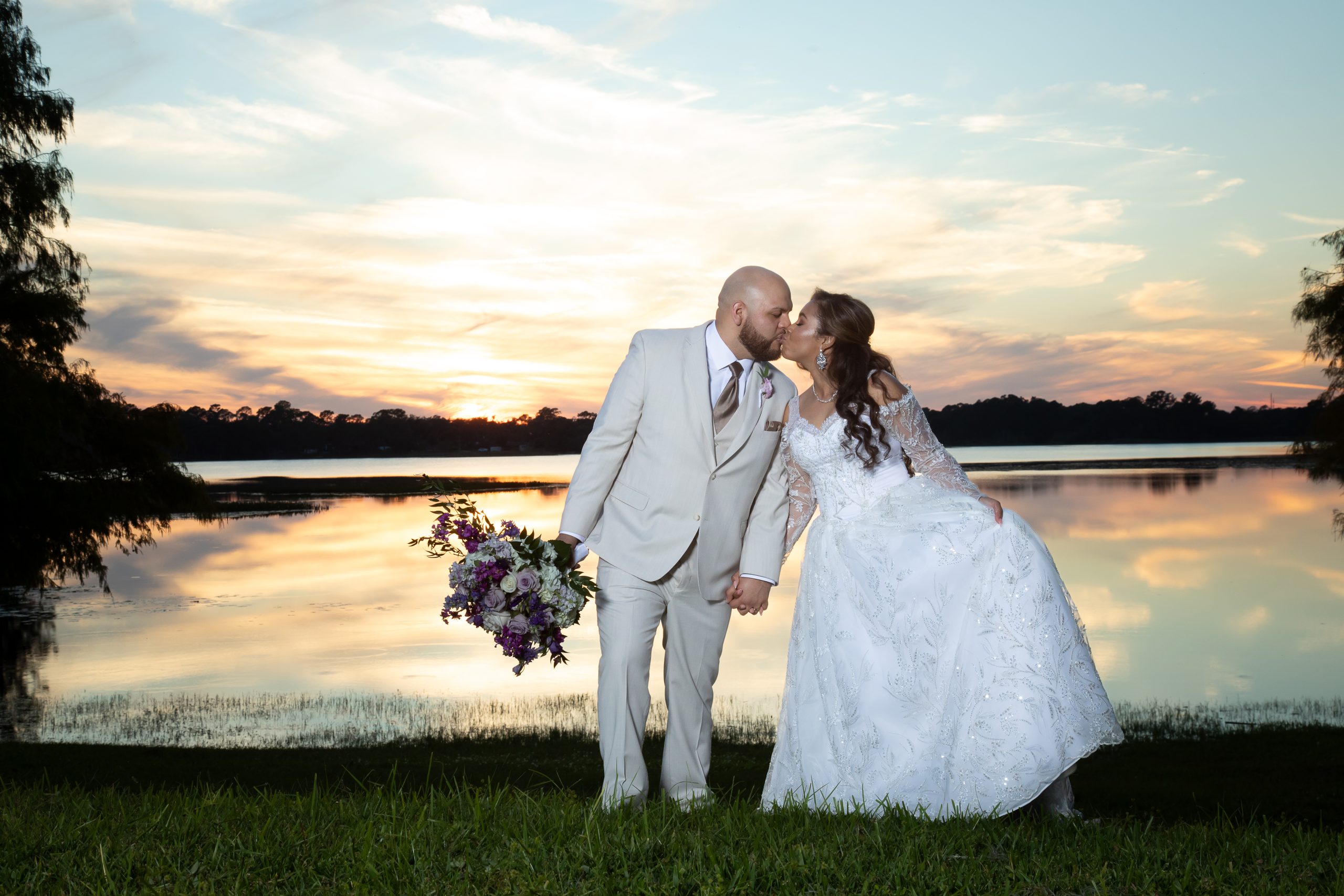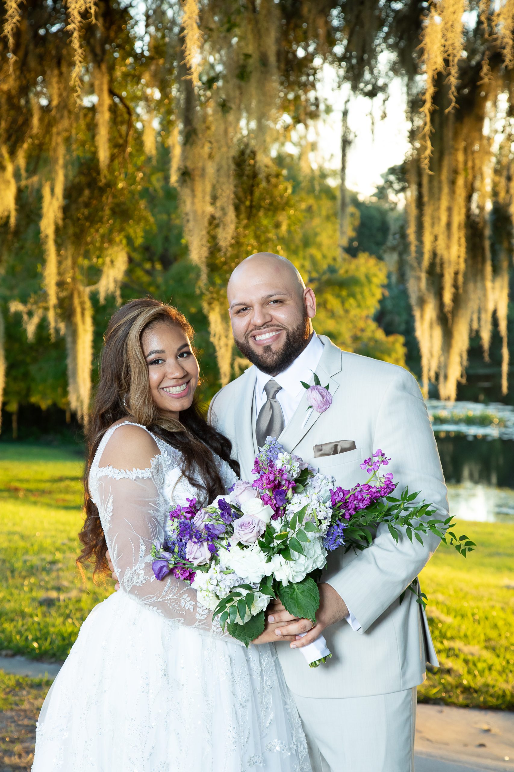 Vanessa and Al had a gorgeous purple wedding at Lake Mary Event Center. Their day was stunning with its royal purple wedding details, timeless ivory florals, and breathtaking lakeside views. It was perfect for them as a couple! But how did they pull it off?