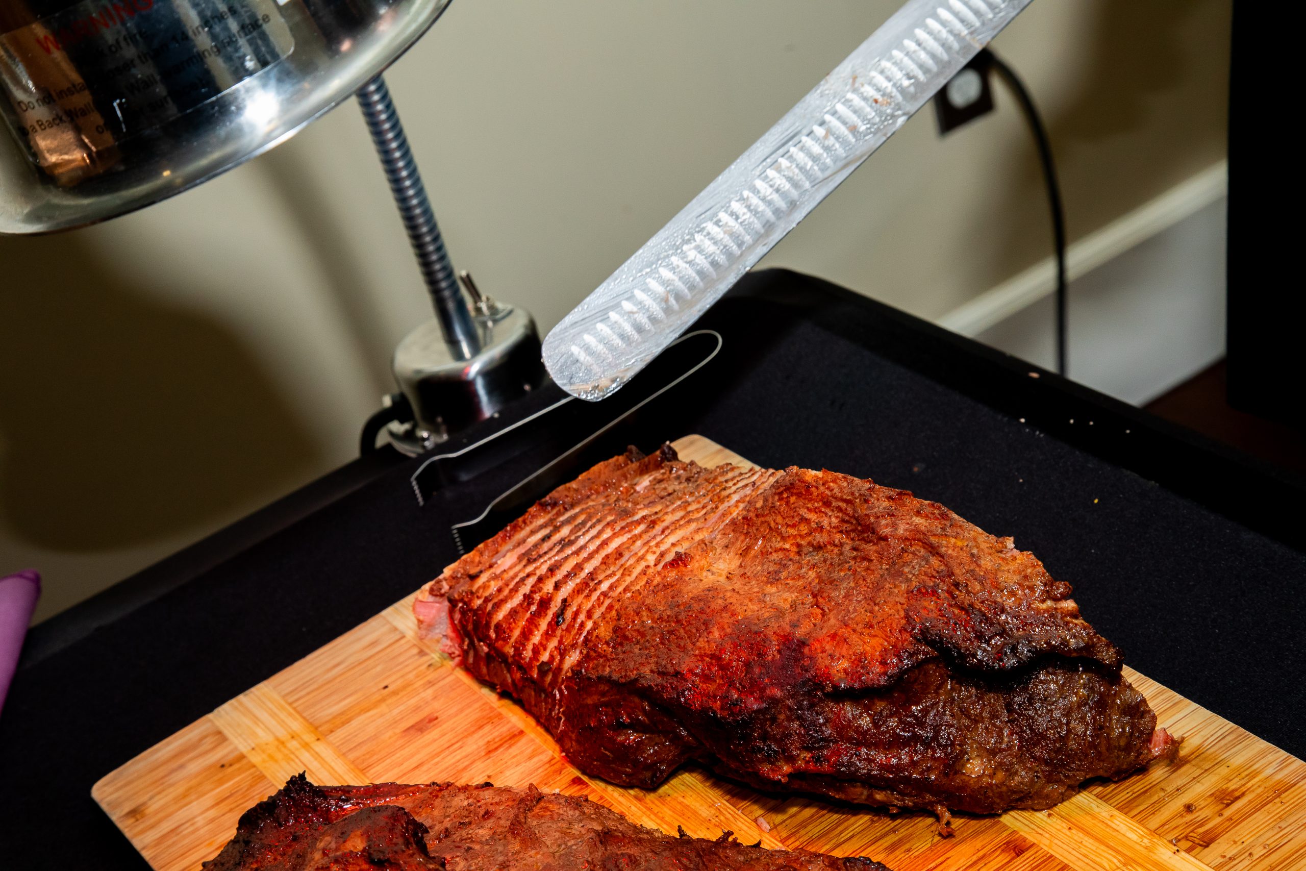 They also added on a Chef carved beef brisket station! An action food station like this is a wonderful enhancement to your wedding menu. It provides another protein option for your guests and adds to the ambiance by having one of our professional Chefs cut and serve the meat right in front of the guests! This extra special touch truly elevates the dining experience for everyone.