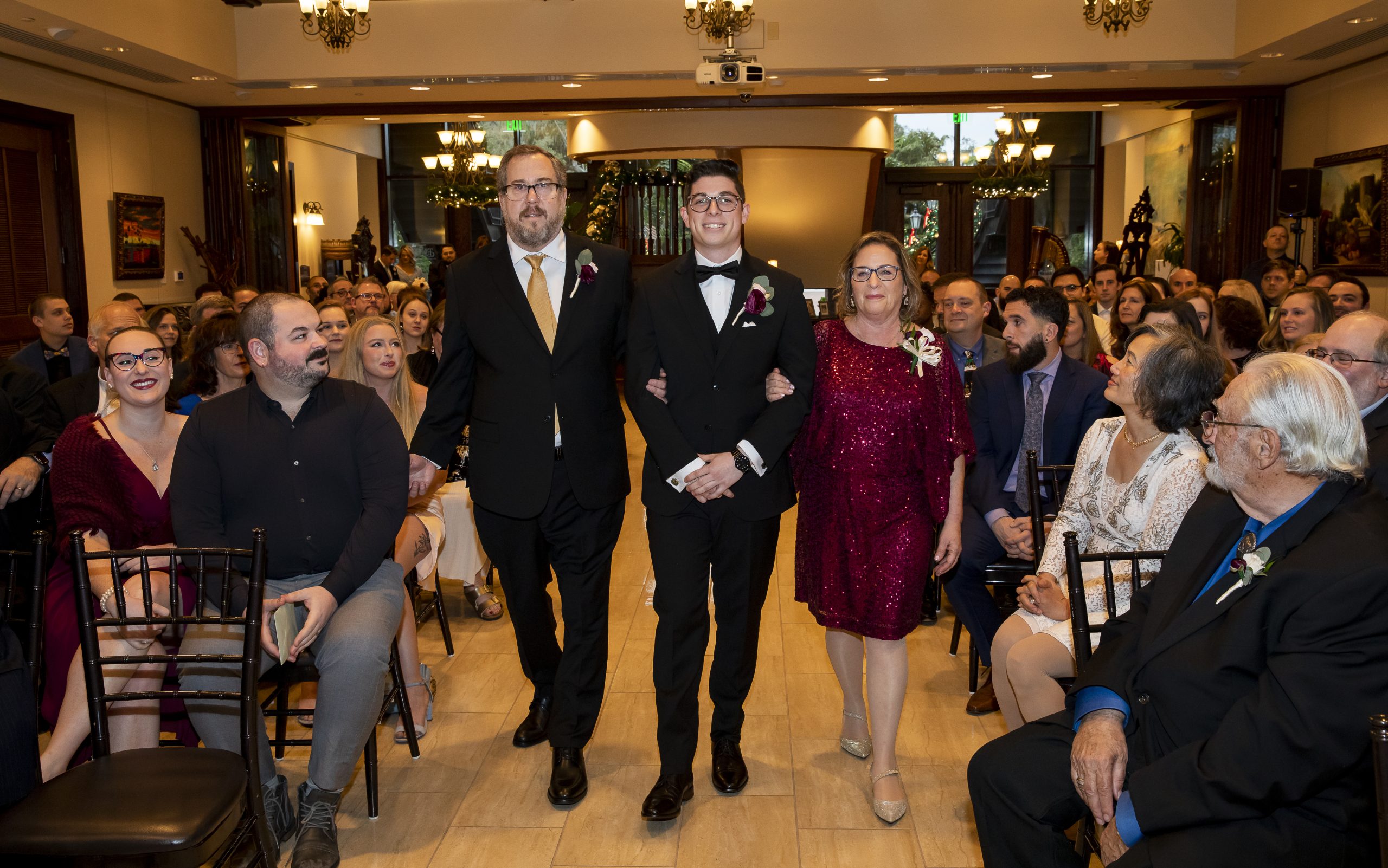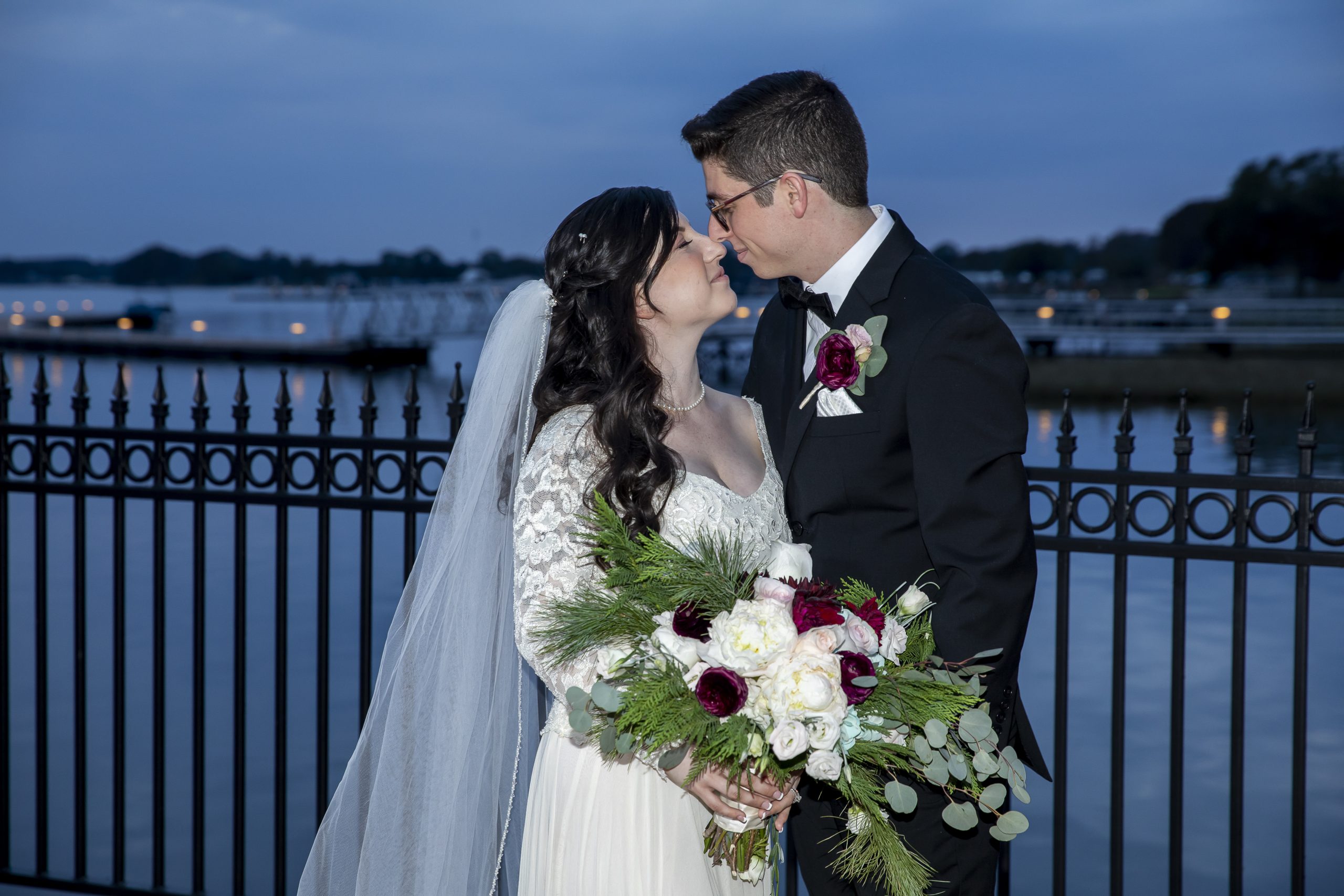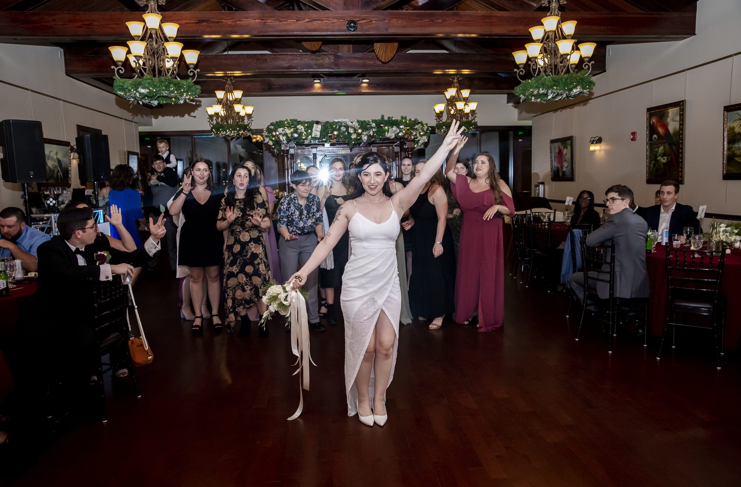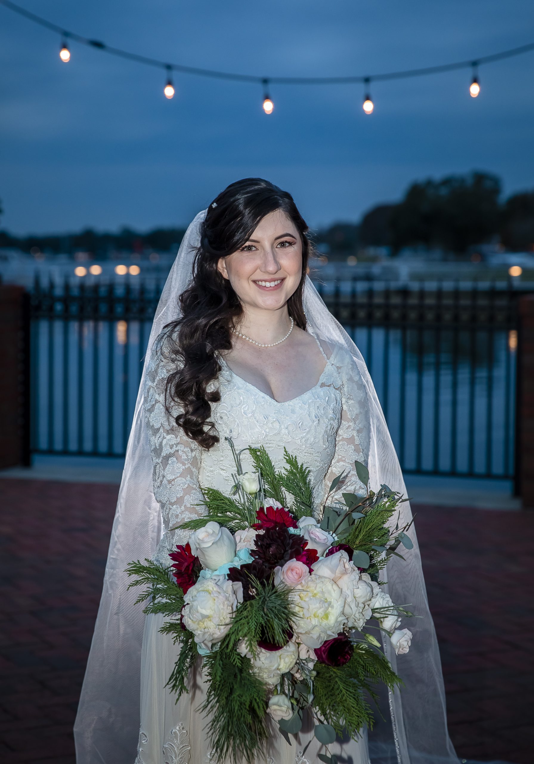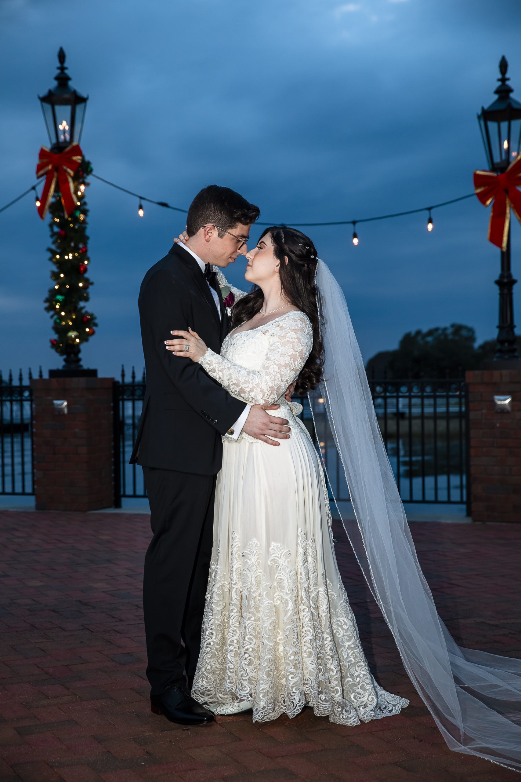 Calling all Christmas-loving couples! This Christmas wedding story is for you! One of our beautiful John Michael Events’ couples, Morgan and Max, had a Christmas wedding at Tavares Pavilion on the Lake. Filled with gorgeous burgundy details and plenty of Christmas cheer, their special day was inspired by the festive spirit of the holiday season. It had everything a Christmas wedding should have, from lush Christmas trees to romantic twinkle lighting to delicious food!