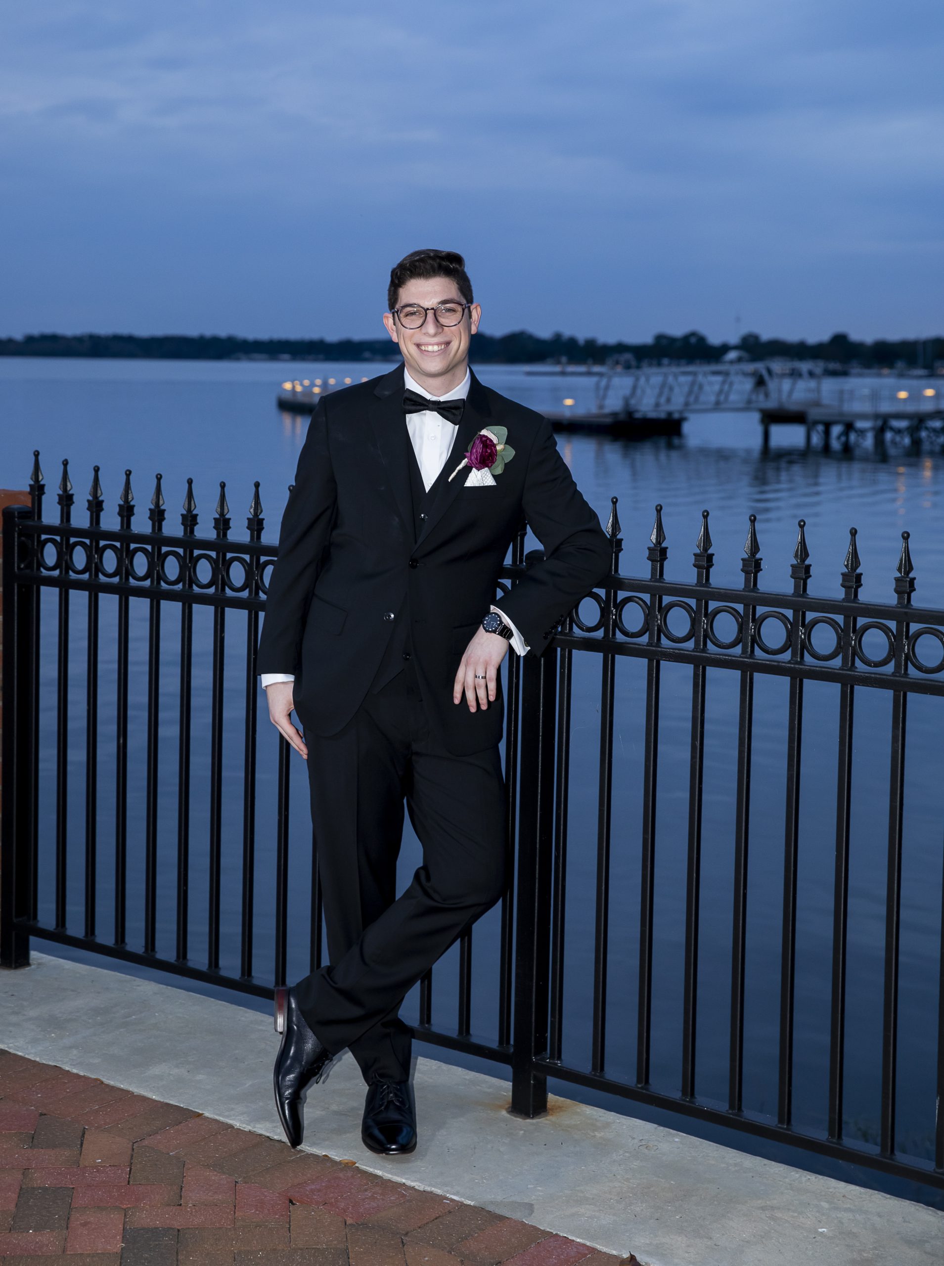 After Morgan and Max said “I do,” their guests adjourned to cocktail hour on the pier. There, our team butler passed hors d’oeuvres, including spanakopita, mini BLT’s atop a baguette, and bacon wrapped dates. We also began the open bar service, which the newlyweds had stocked with beer, wine and liquor.