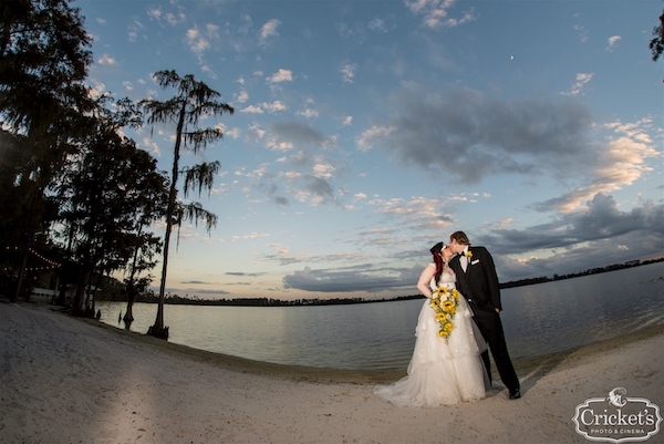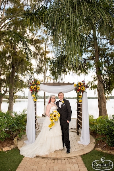 Jasea and Evan were married in a beautiful waterfront wedding under a wedding arbor decorated with huge sunflowers.