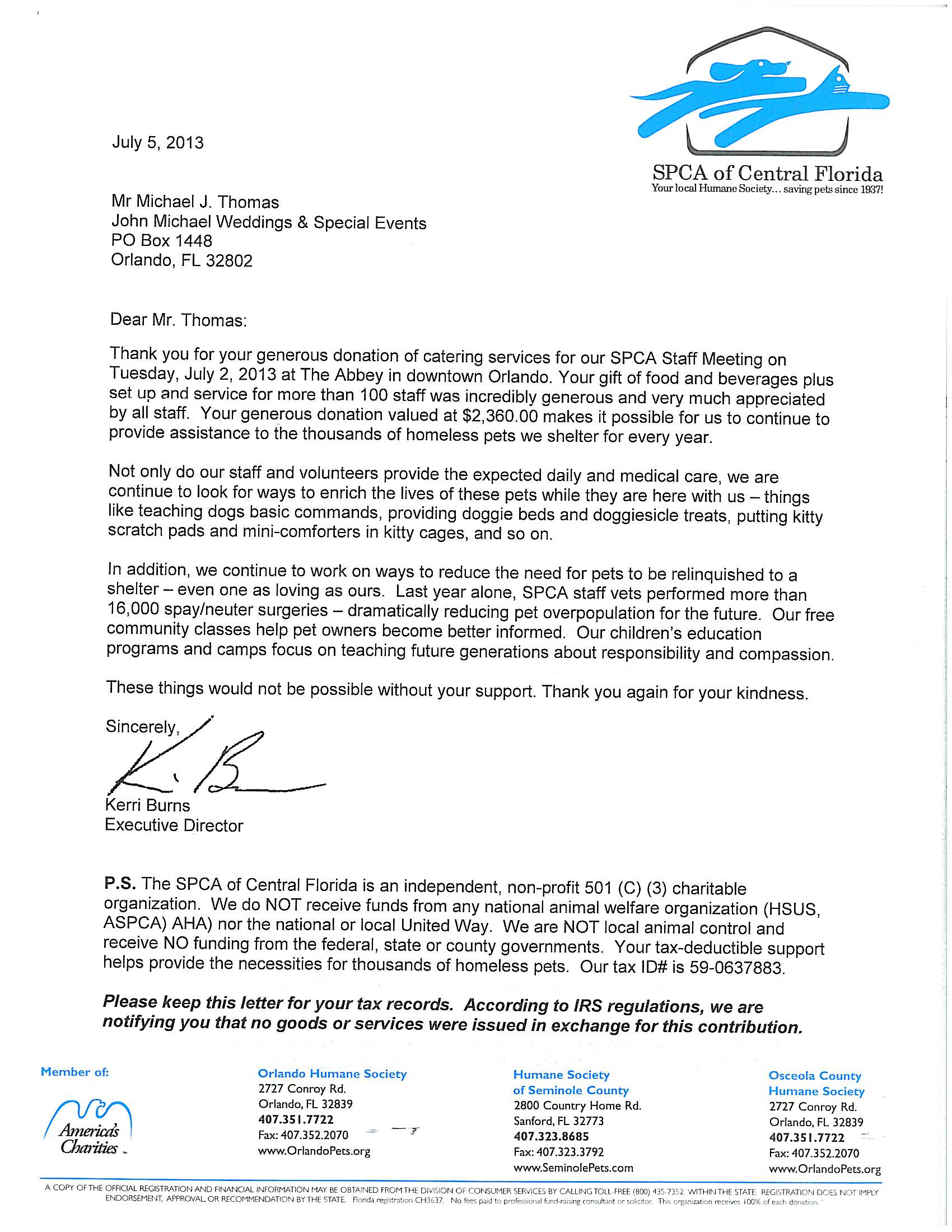 Owning a business is just more than the daily operations of the business. Giving back to our community is just as important. Owner Michael has a passion for the SPCA and what they do. See this letter below from a recent event we did for them. In the picture you will see Michael with his two “kids” Nadia (pug) and Lindy (jack russell). Michael’s philosophy: “If you continually give, you will continually have!”