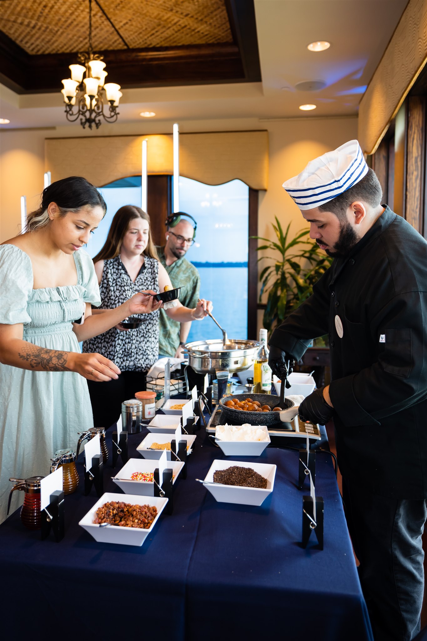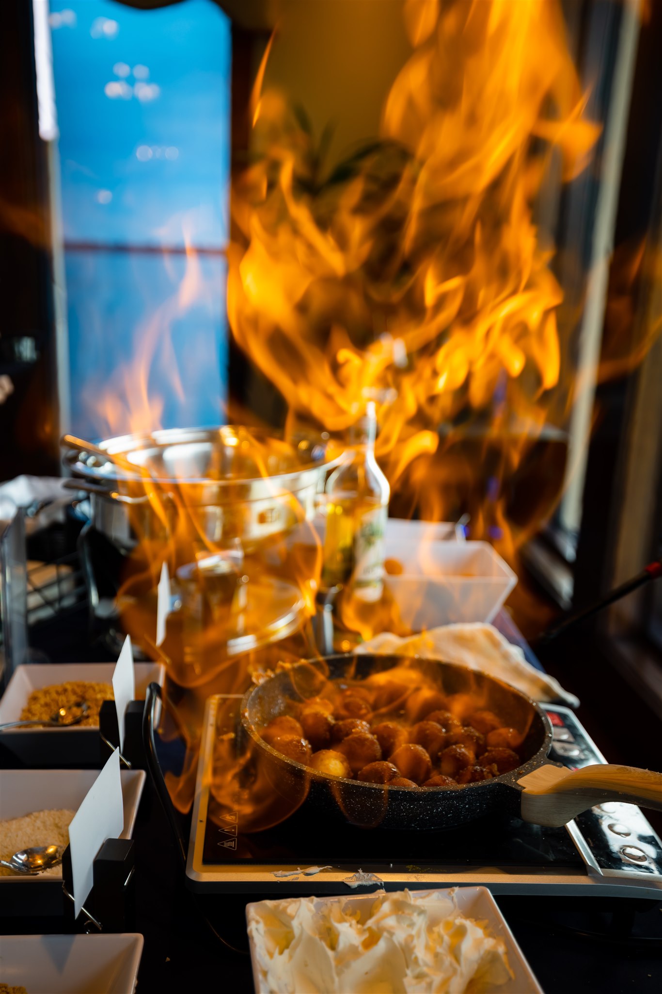 For a little more dramatic flair, you might consider one of our “flaming” stations! Our Chef will saute then flambee either our classic Bananas Foster or Donut Holes in 151 rum, creating a burst of flame reminiscent of what you would see on The Food Network.