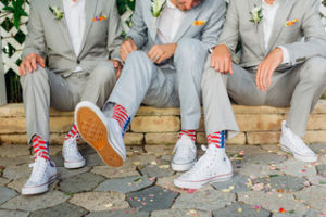 Tobin looked very handsome in a light blue grey suit and he and the groomsmen had a little fun with Converse sneakers and bright red, white and blue socks.