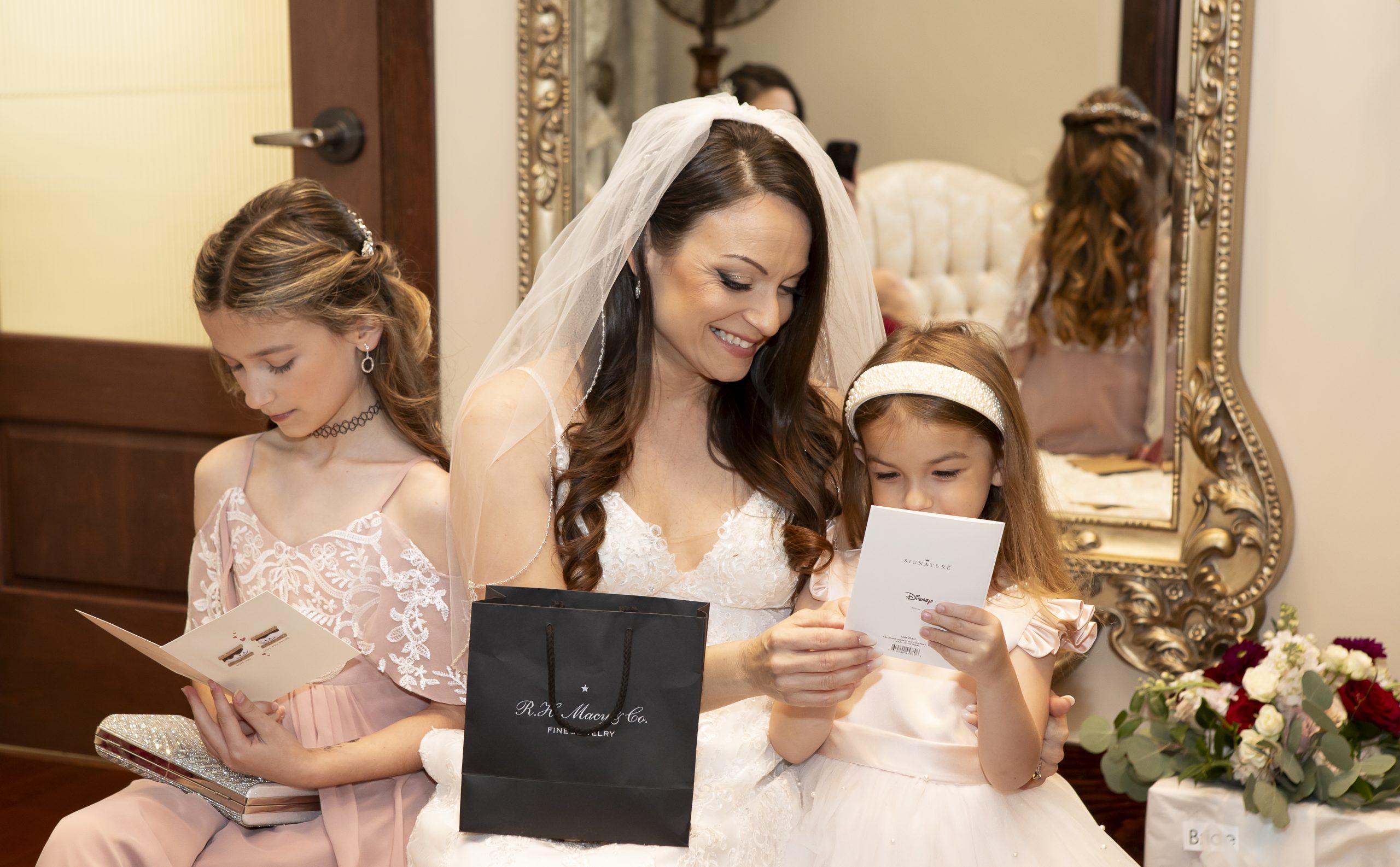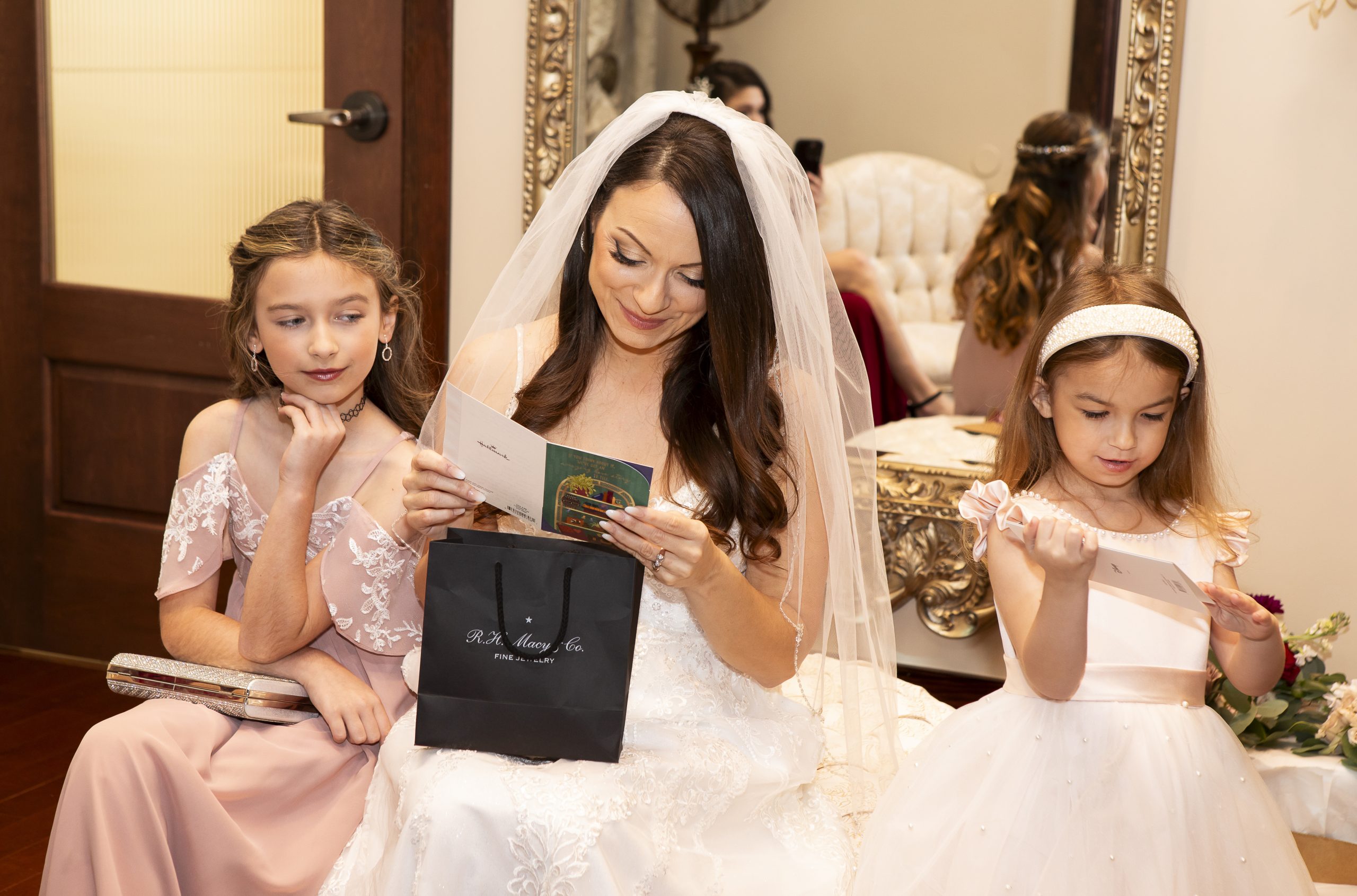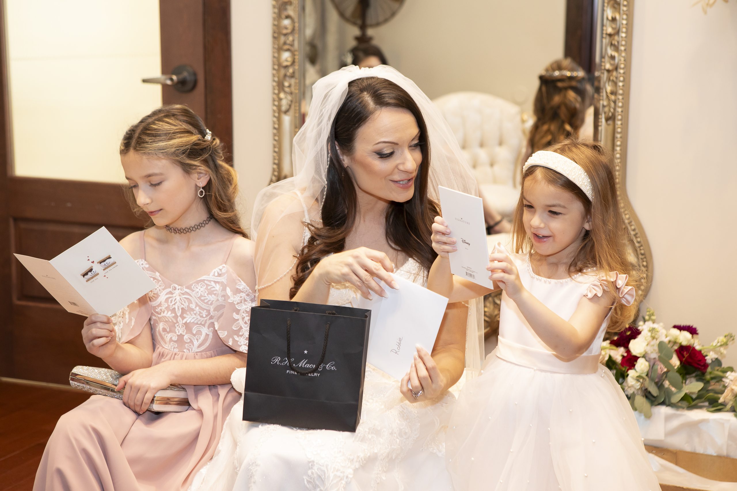 While we were busy setting up the personal décor and our wedding catering equipment, Rebecca and William got all dolled up for the day alongside their sweet kids. They exchanged special letters and gifts as they got ready for the ceremony, but saved seeing each other for the first time until they got to the aisle.