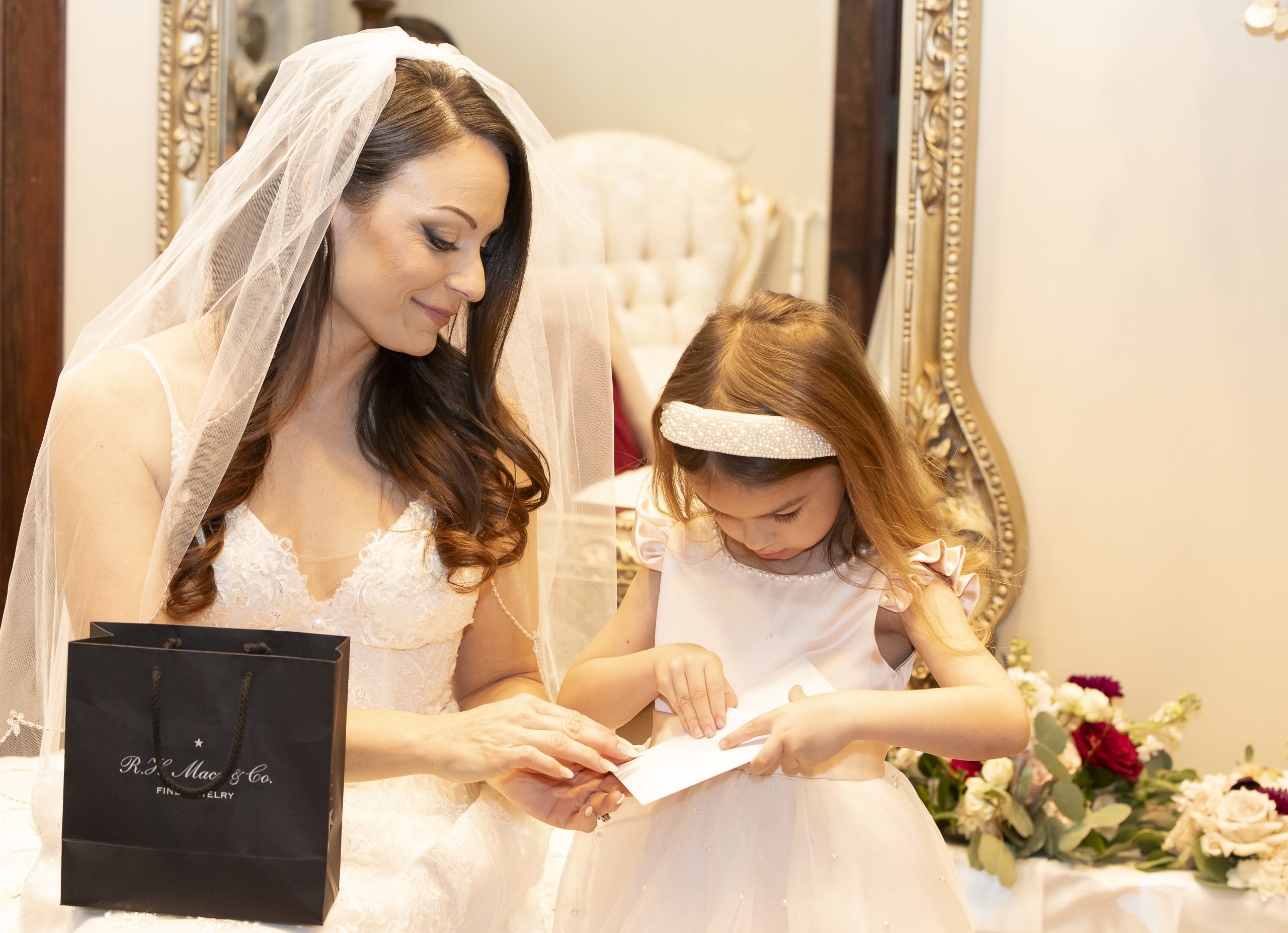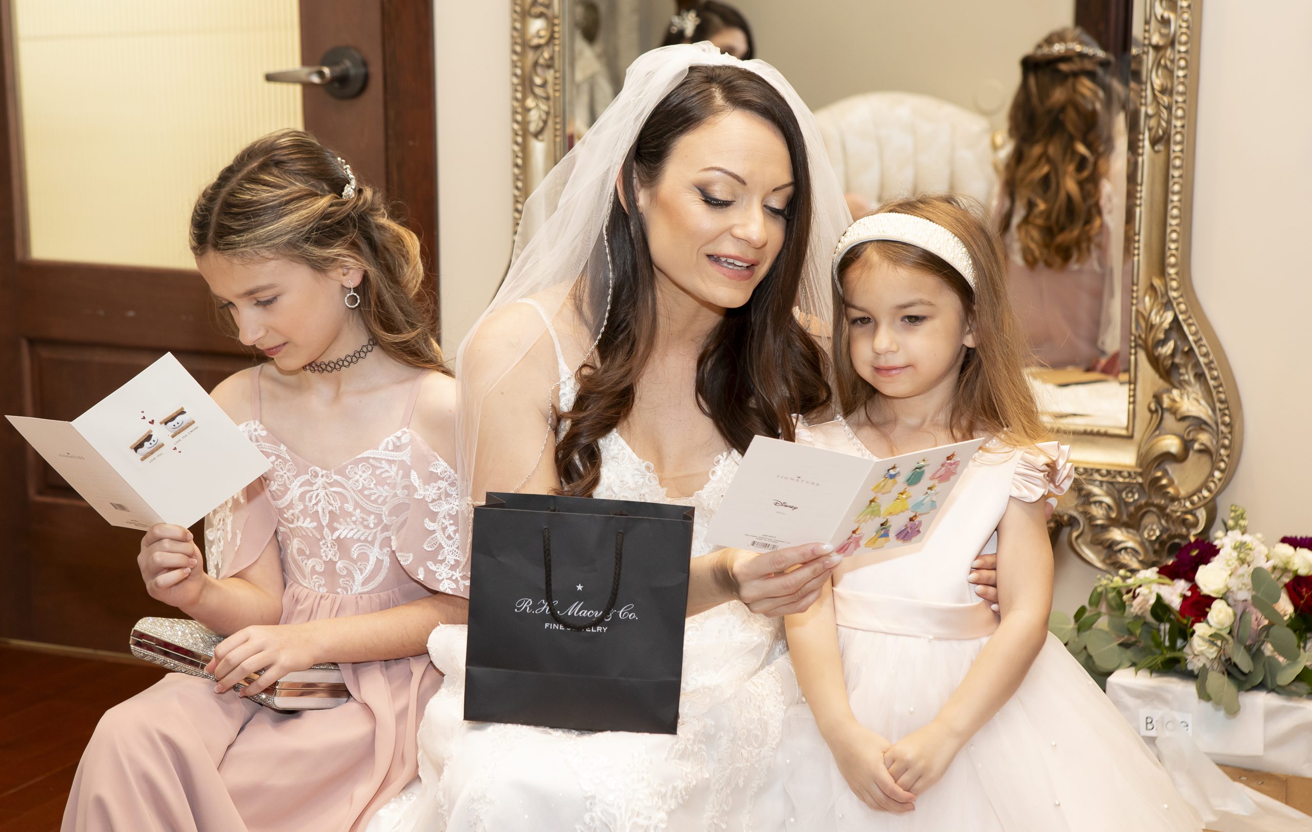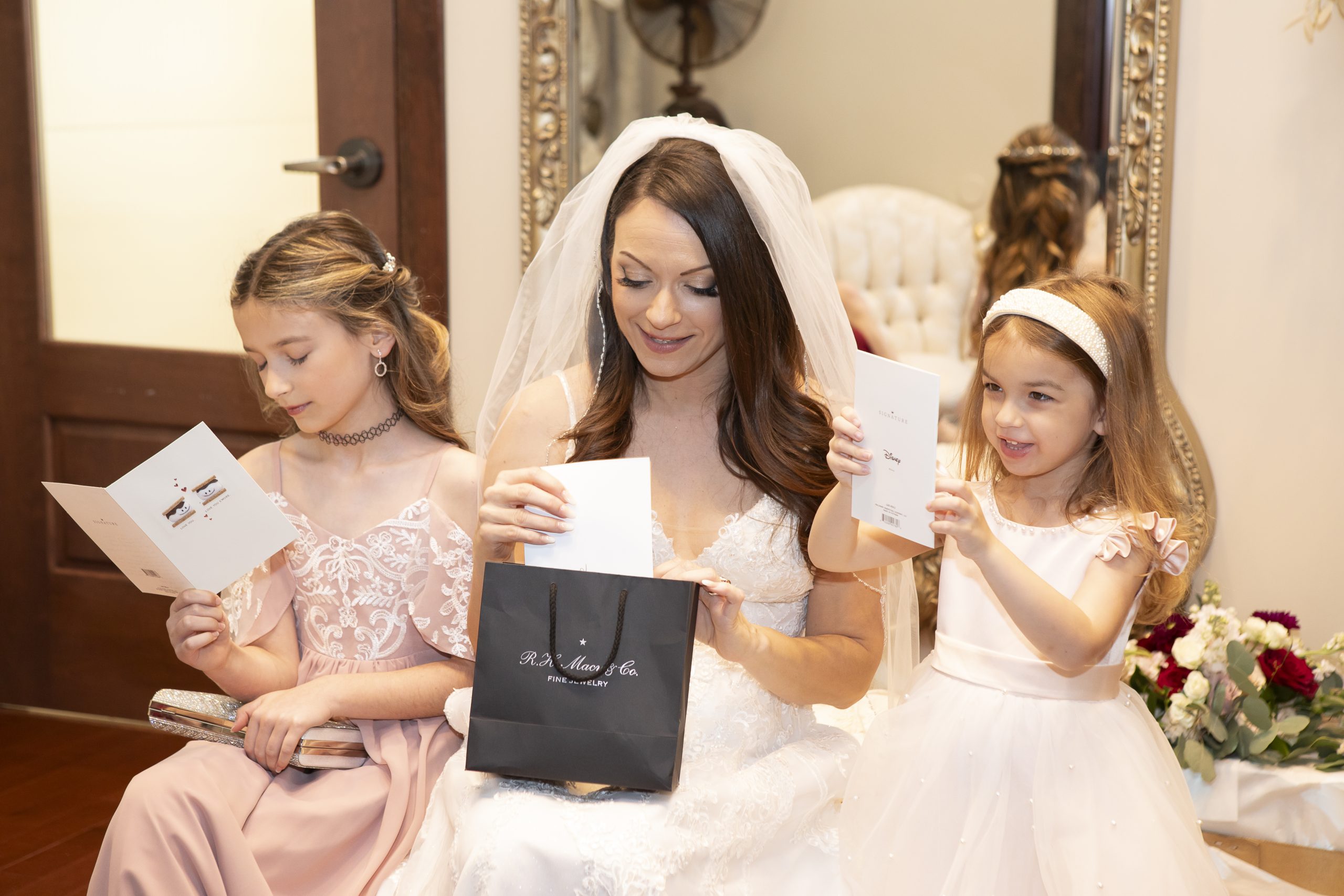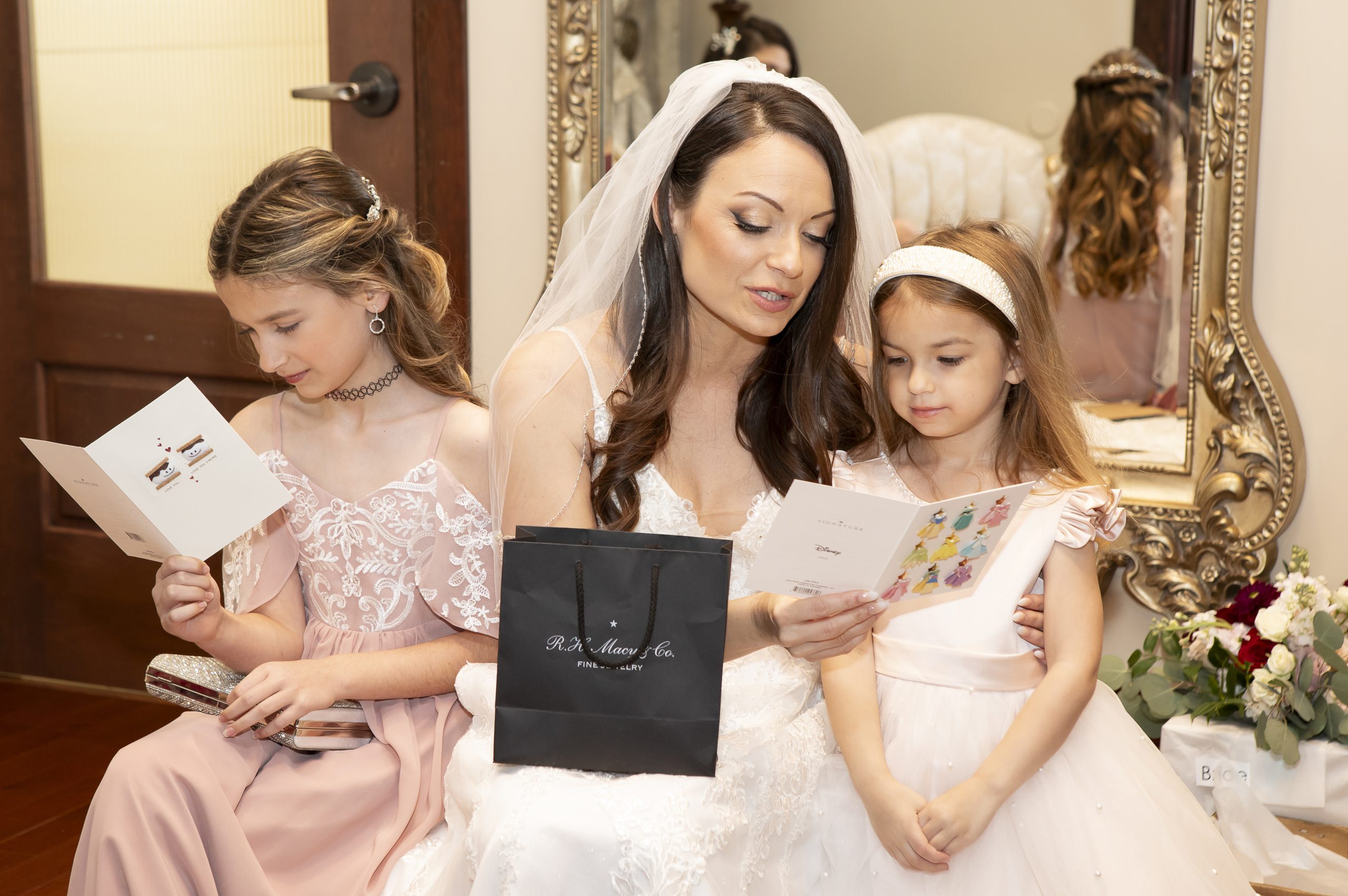 While we were busy setting up the personal décor and our wedding catering equipment, Rebecca and William got all dolled up for the day alongside their sweet kids. They exchanged special letters and gifts as they got ready for the ceremony, but saved seeing each other for the first time until they got to the aisle.