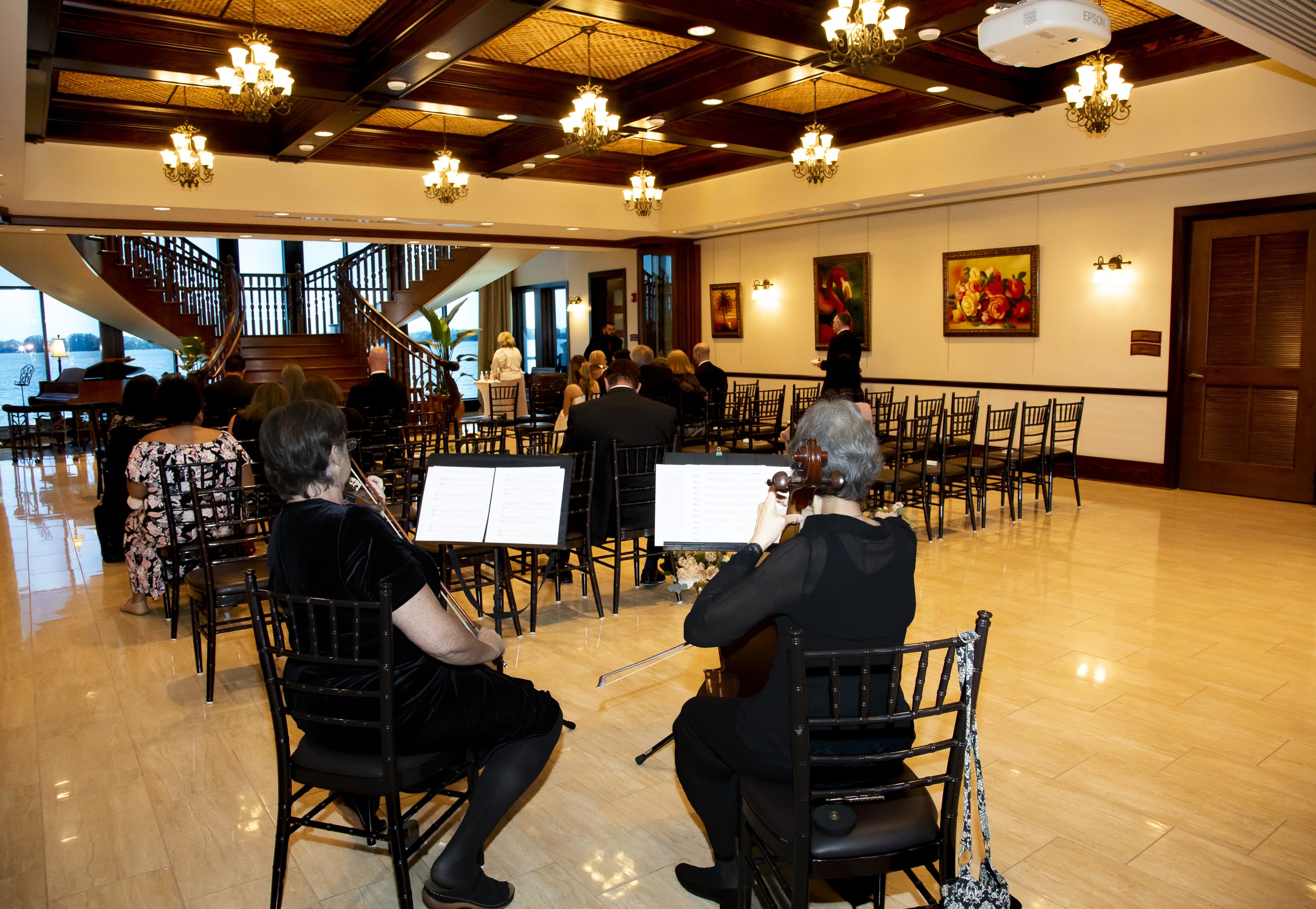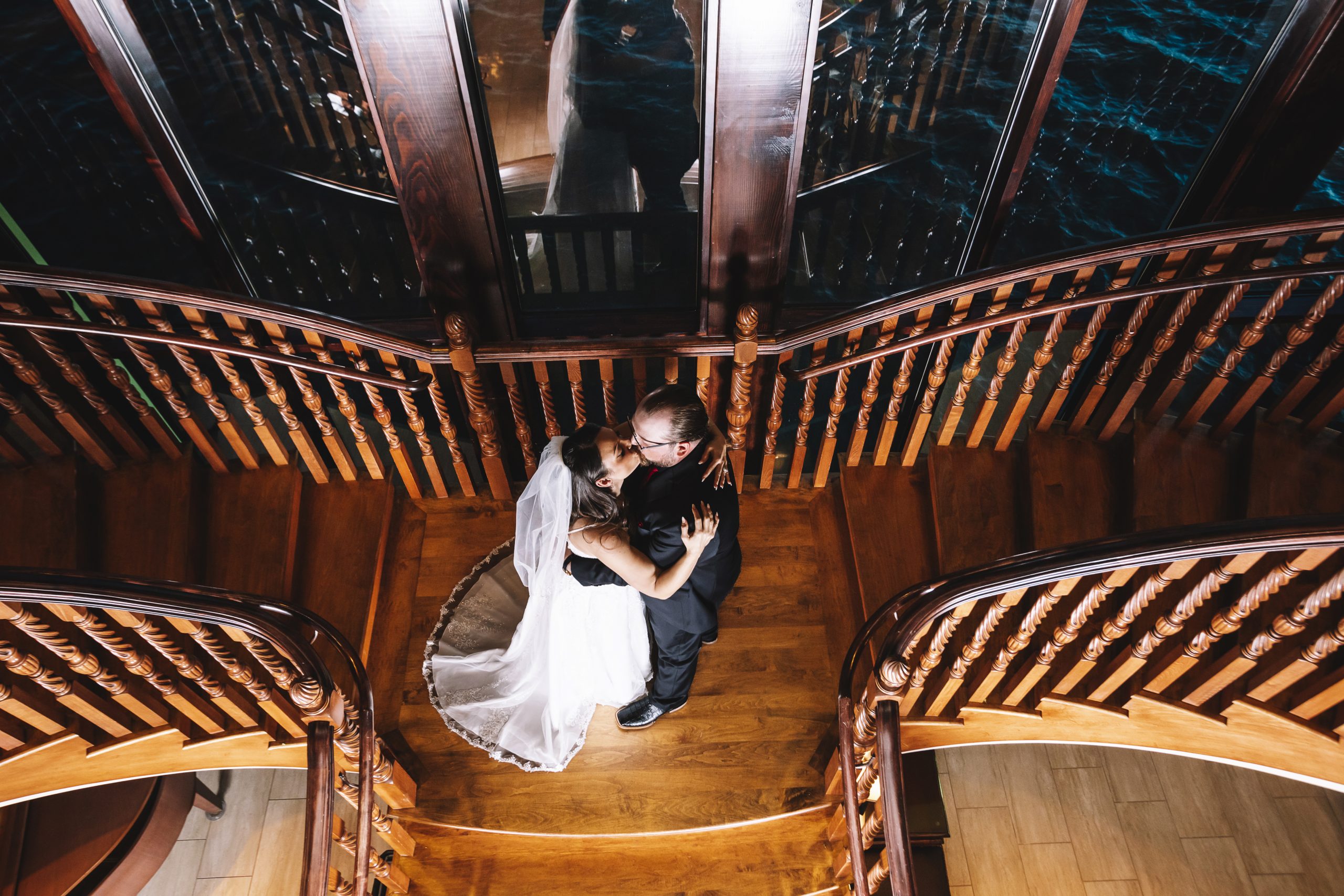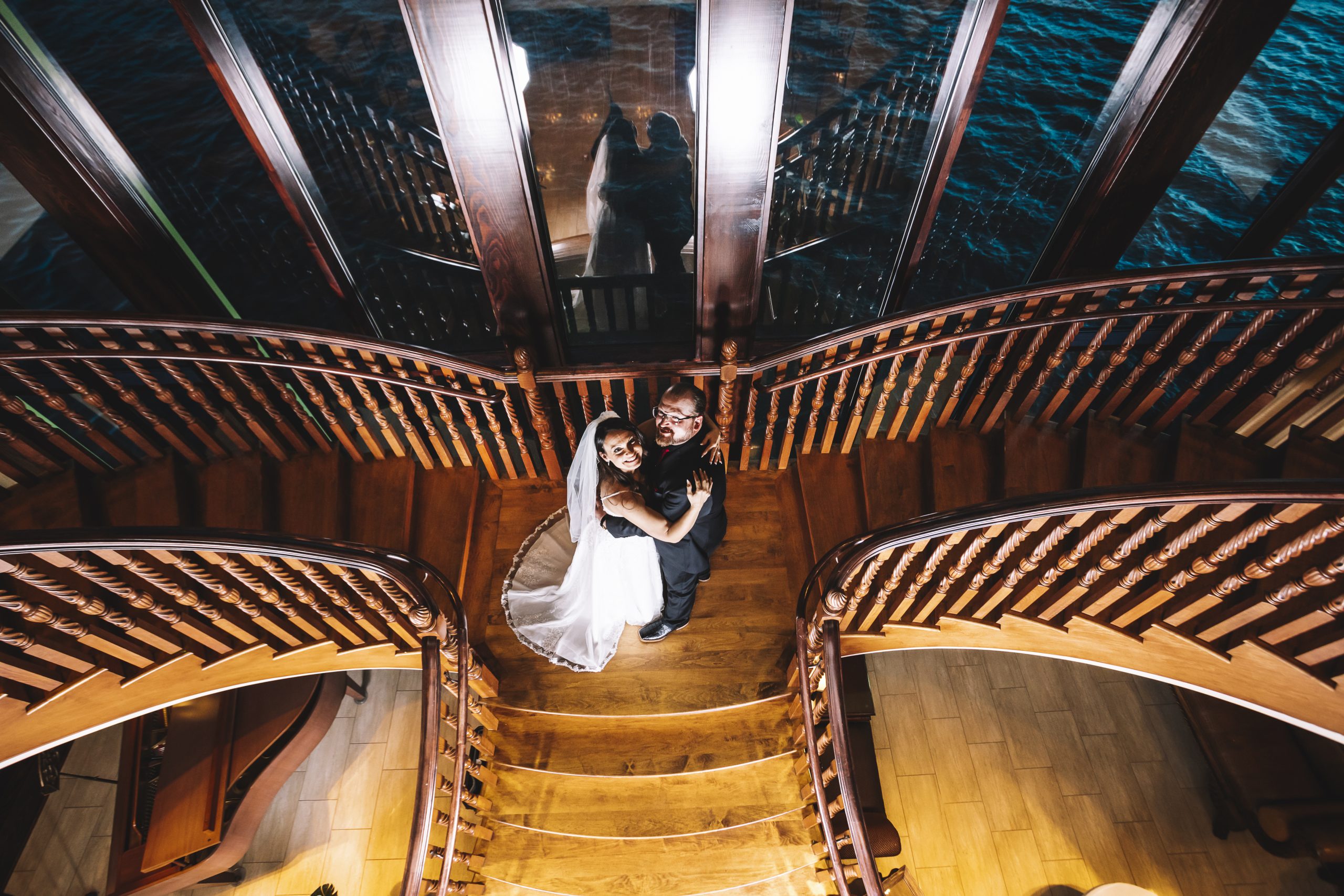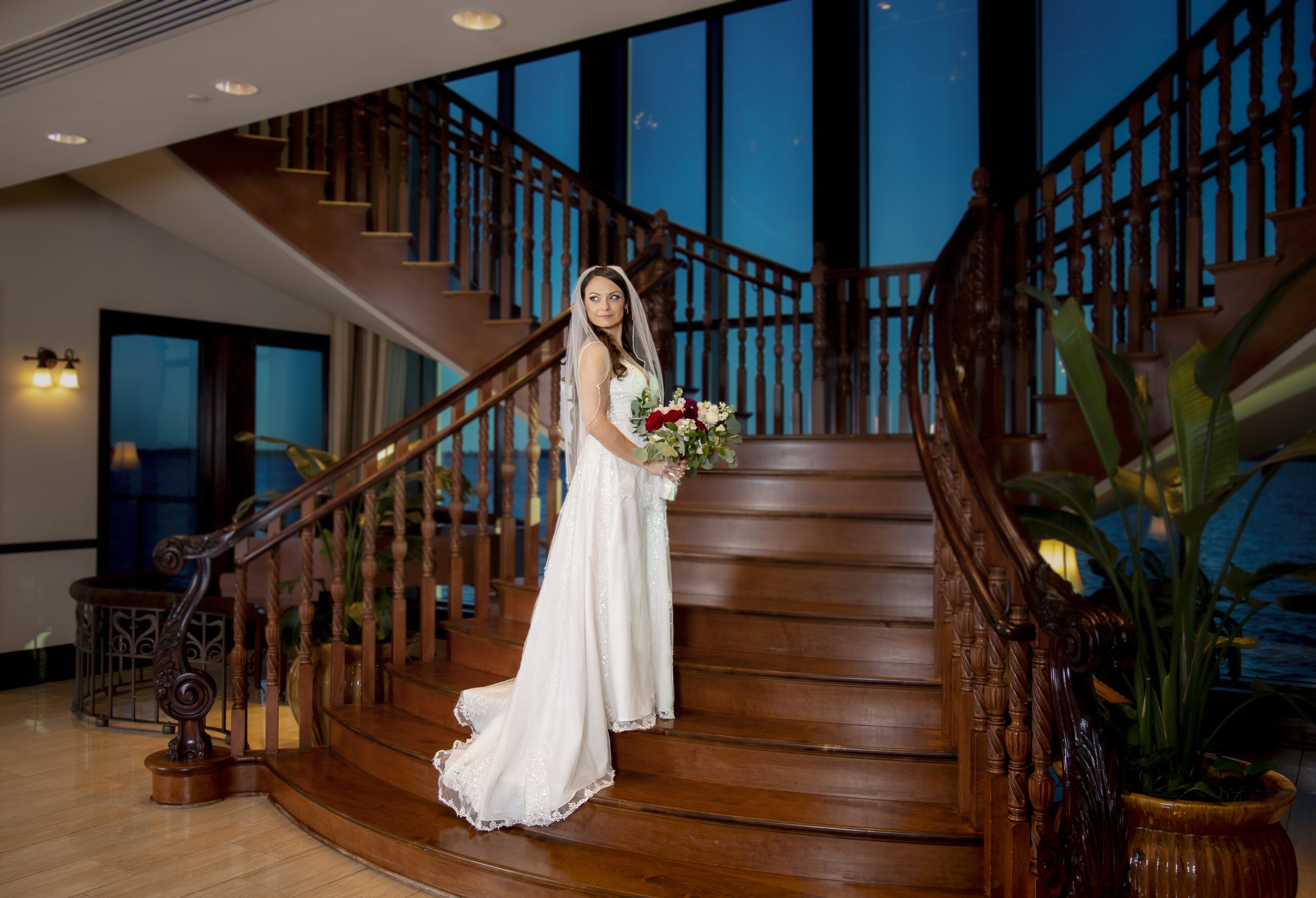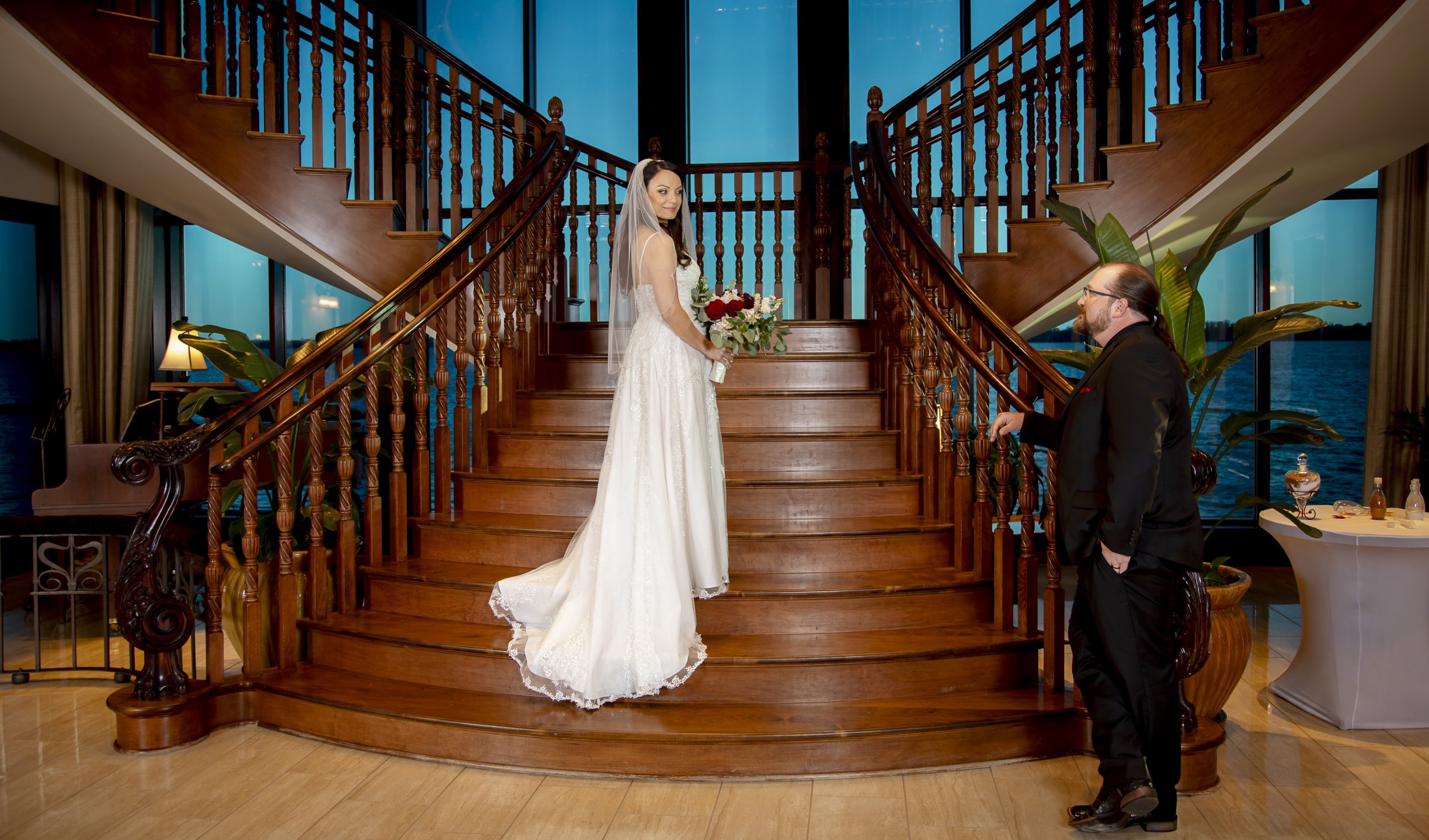The Tavares Pavilion is one of our favorite Orlando wedding venues because of its gorgeous lakeside views and versatile event spaces. Their ceremony site features a gorgeous grand staircase, golden chandeliers, and floor-to-ceiling windows that allow for natural light to flood into the room.