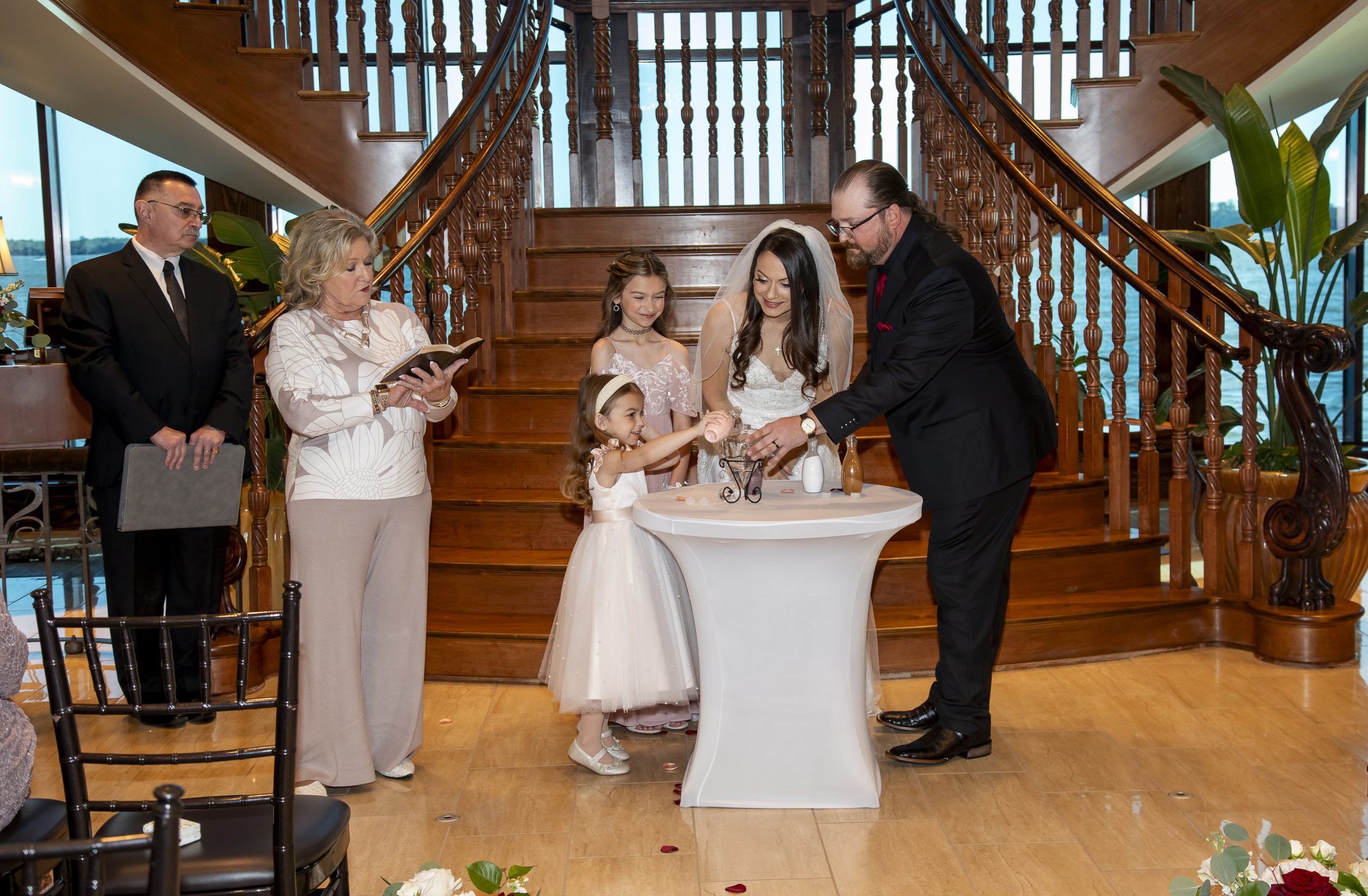 Family is everything to Rebecca and William, so it only made sense for their kids to be involved in the ceremony! They did a family sand unity ceremony, where the children helped pour different colored sands into a vase to represent not only the union of this couple, but also the union of this family.