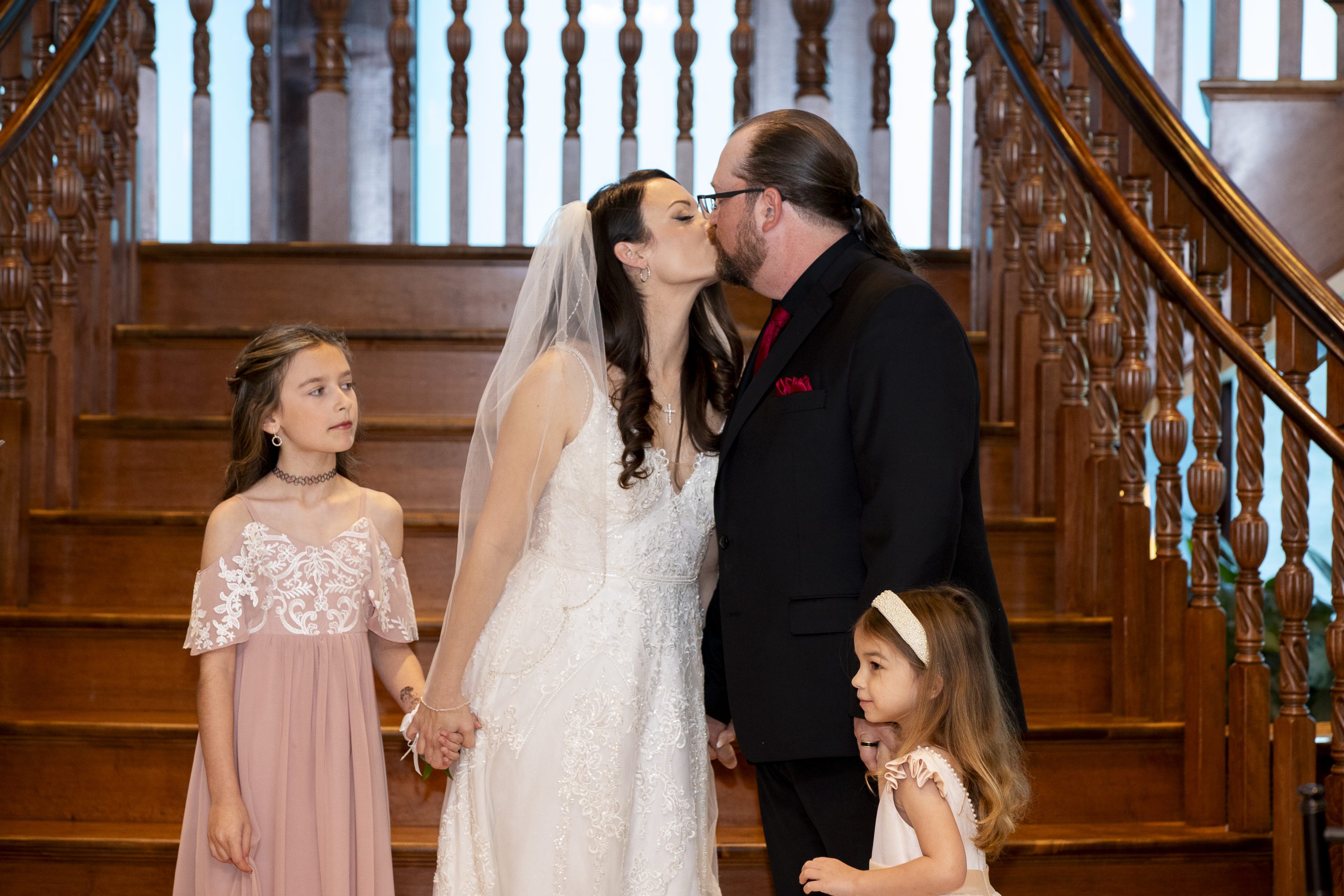 Rebecca and William then sealed the deal with a kiss and proceeded back up the aisle as husband and wife with their kids in tow. It was a joyful moment!