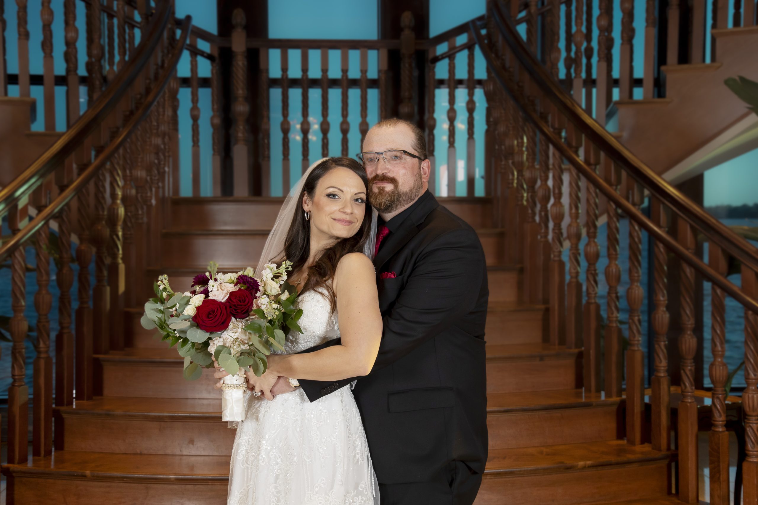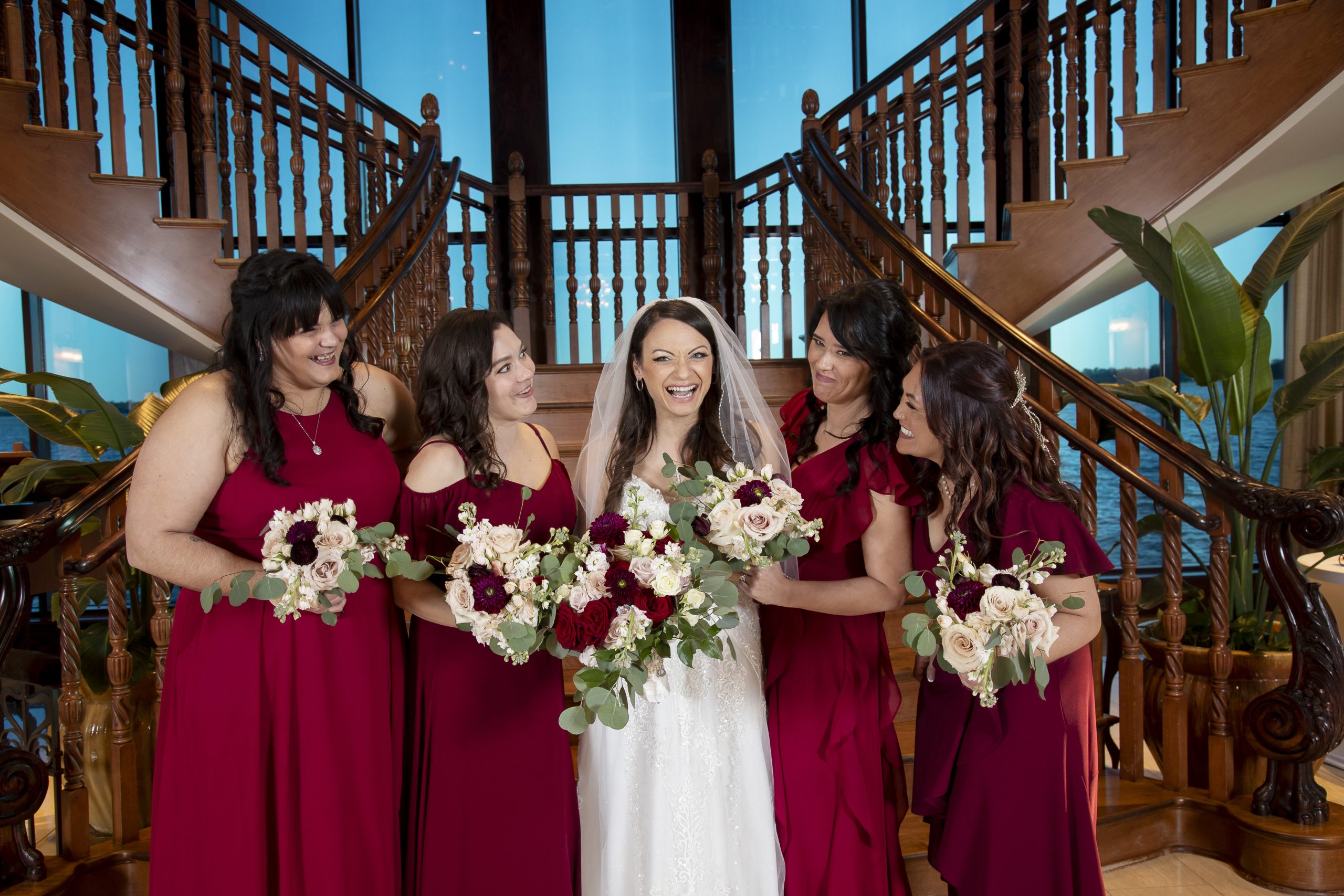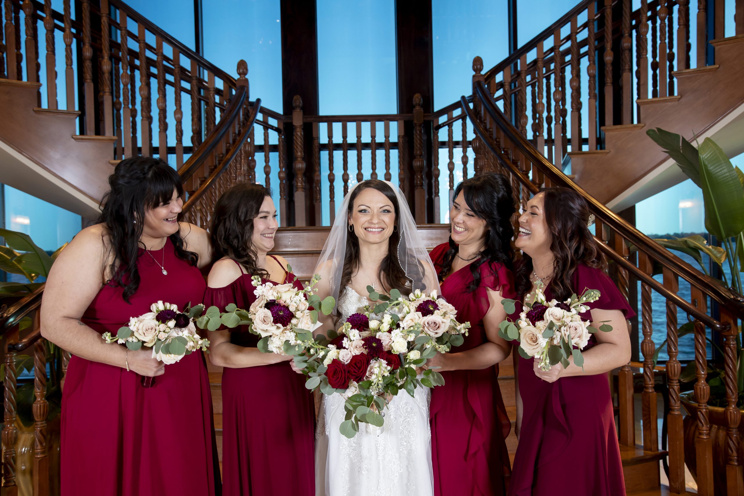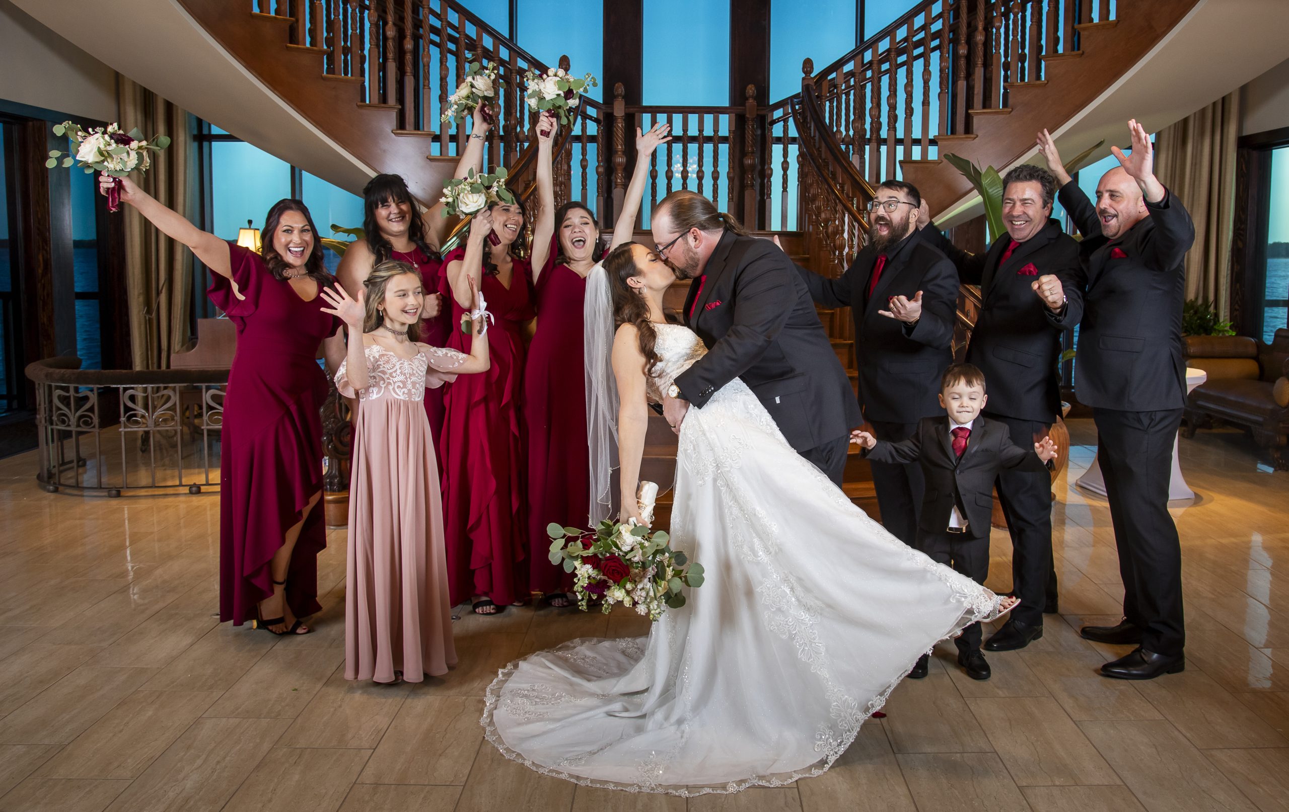 One of our wonderful couples, Rebecca and William, utilized one of our Diamond Package offerings to have a beautiful burgundy and ivory wedding at the Tavares Pavilion. Our Event Managers assisted them with booking their dream Orlando wedding vendors, helped plan their wedding timeline, and of course, carefully crafted a delicious wedding catering menu.