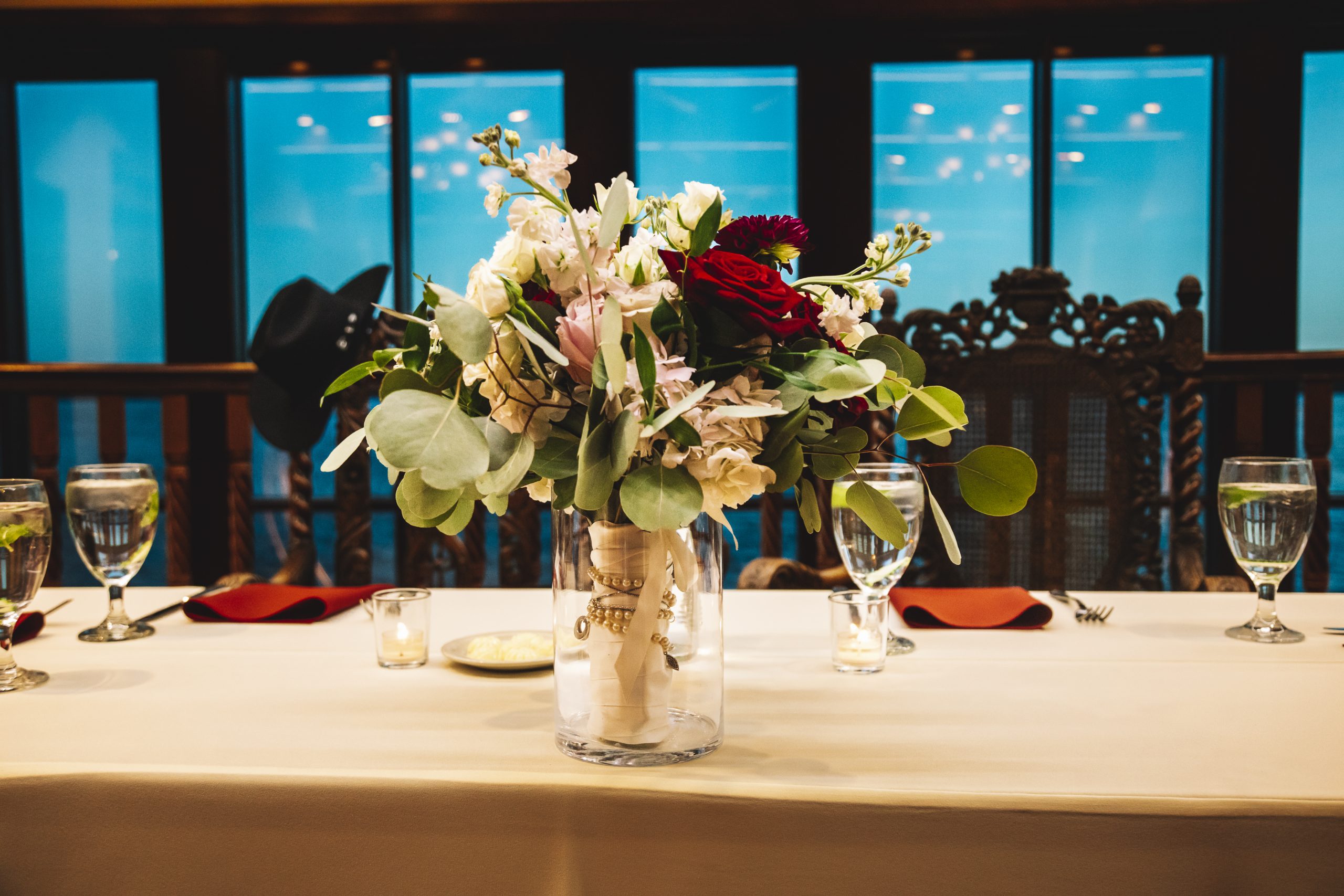 For Rebecca and William’s burgundy wedding, their customized Diamond Package included: