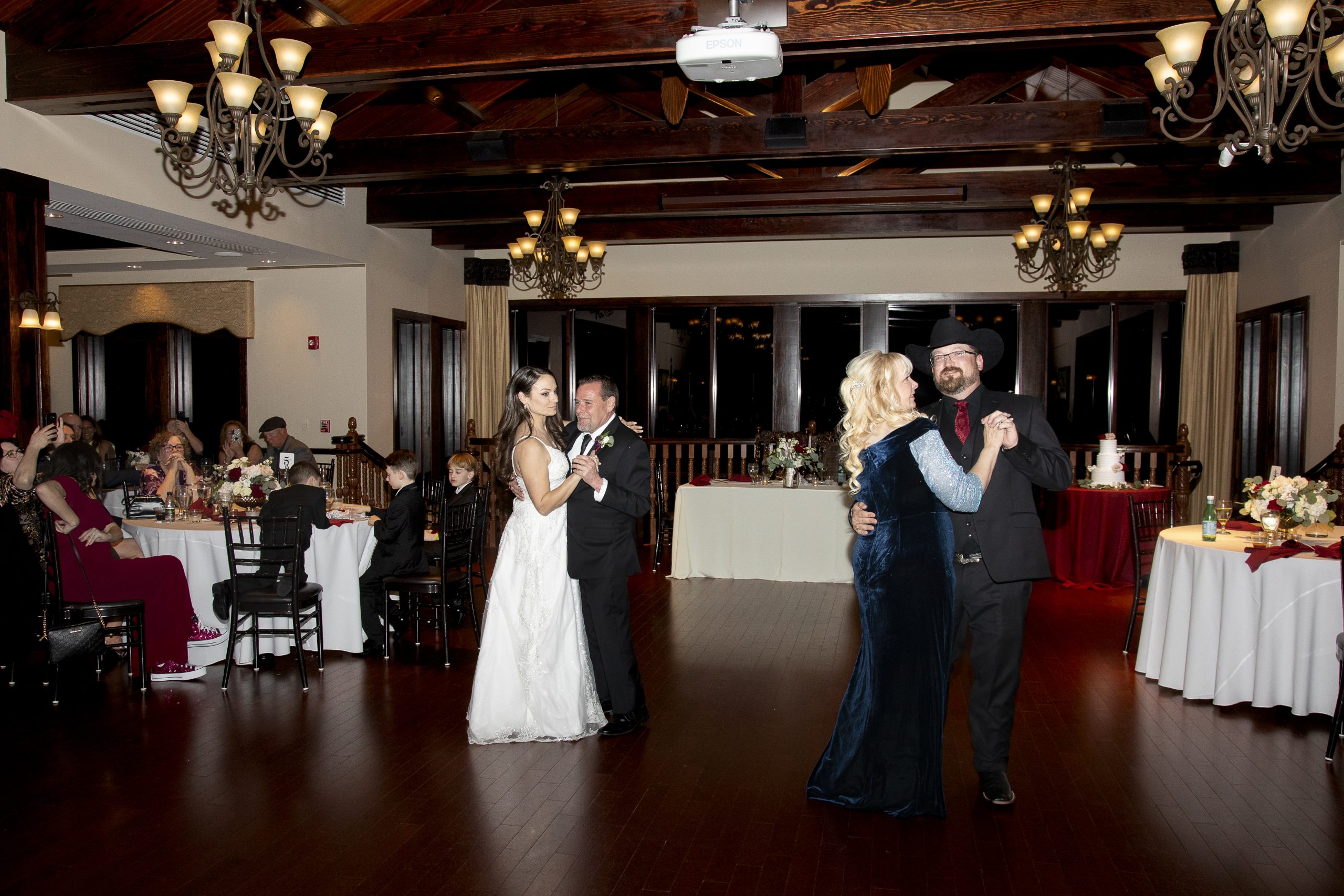 After everyone was full and happy, Rebecca and William danced with their parents and then cut their wedding cake! It was a three-tiered amaretto cake adorned with fresh floral and greenery. Our team cut and served the cake at this time as well as set out a gourmet coffee station.