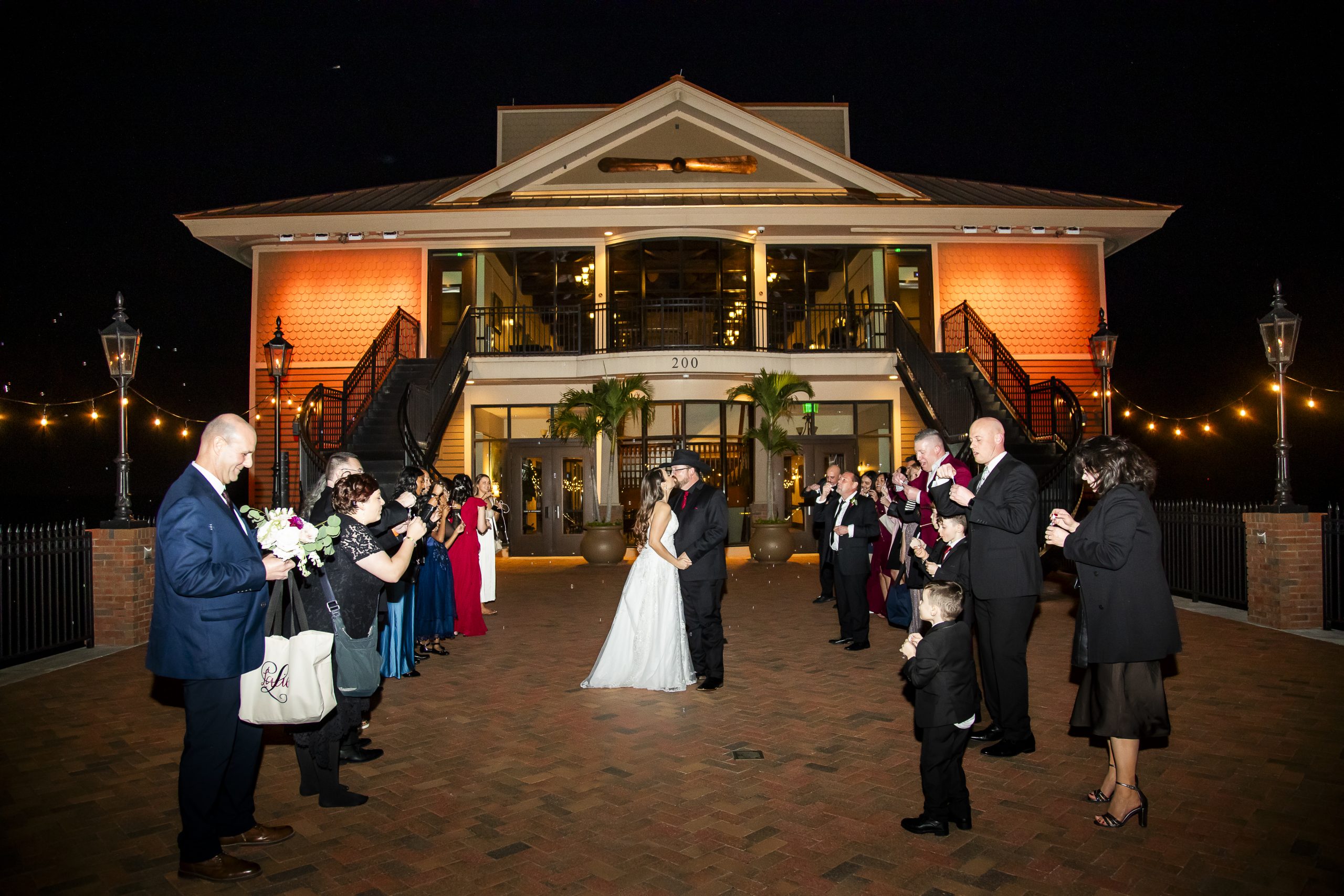 Following one epic dance party, this burgundy wedding came to a close. We lined everyone up outside for Rebecca and William’s bubble grand exit, where the newlyweds concluded the night with one more kiss before heading off into their next chapter together.