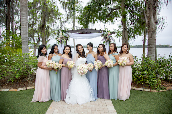 The pastel color story included her wedding party who wore pink, sage, mauve and blue.