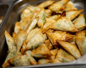 Tough to pronounce, but easy to eat! This is a traditional Greek pastry filled with spinach and feta cheese in a filo dough. It’s light, flaky, and offers guests a taste of another culture that they may not have experienced before. Vegetarian guests of ours have told us they appreciated this out-of-the-ordinary appetizer option!
