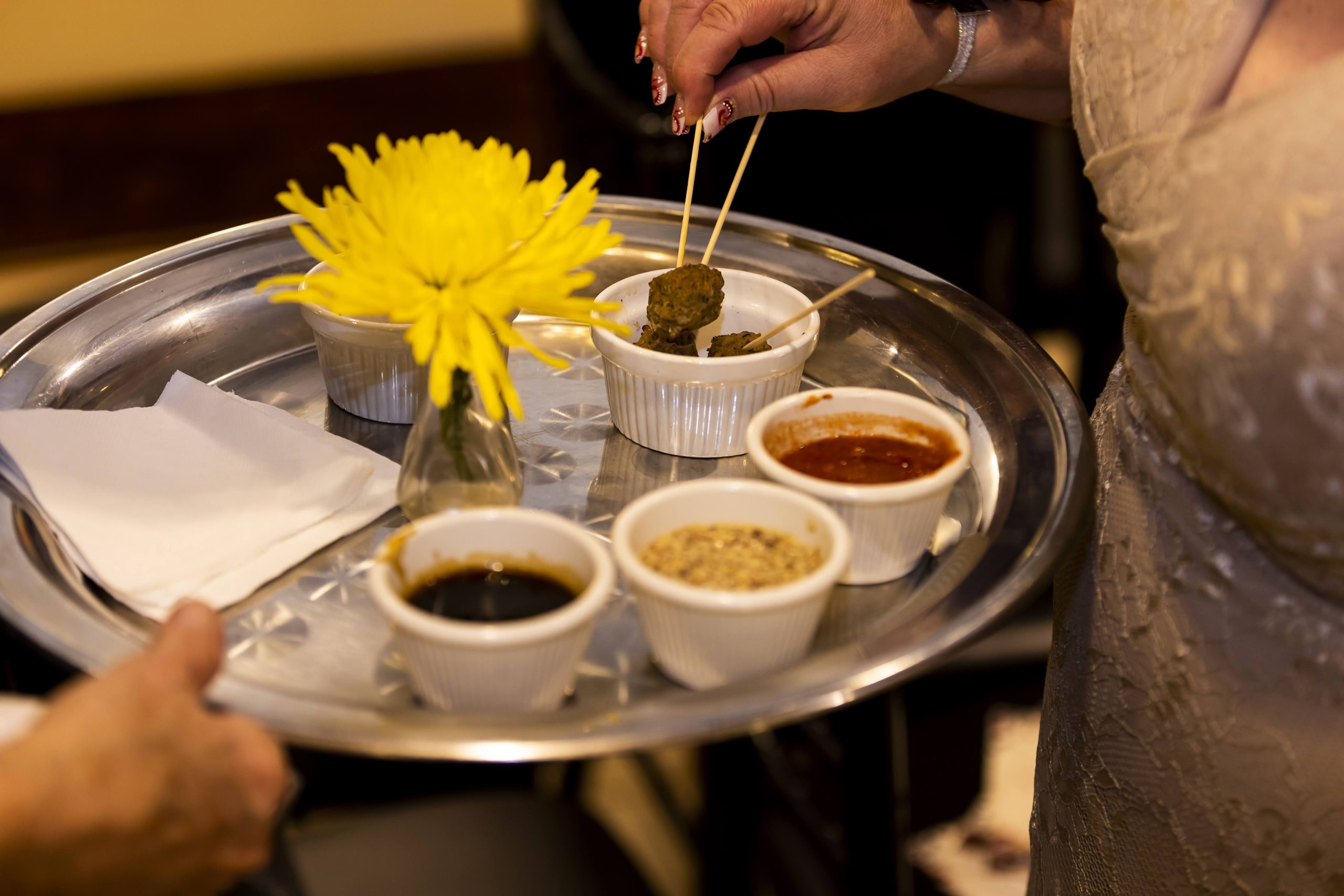 These are our signature handmade meatballs that come with a variety of dipping sauces, including marinara, pomerey mustard, and bourbon sauce. Meatballs are a great option because they’re more filling than other appetizers and truly pack a punch! They’re enough to hold any hungry guests over while still leaving room for dinner.