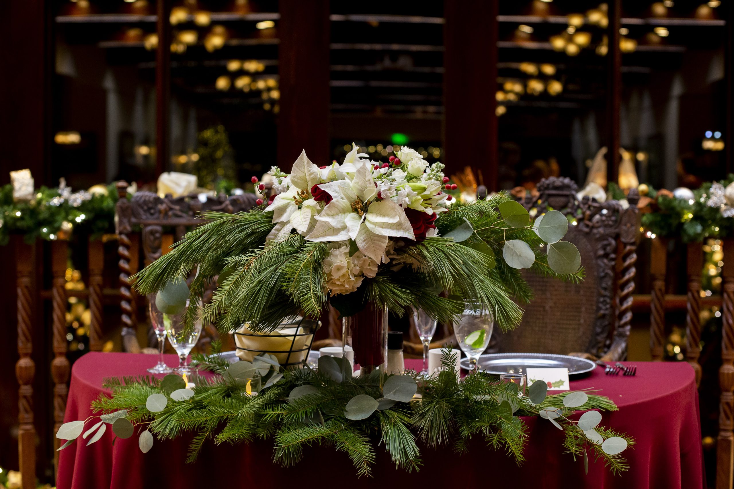 One of the first items you’ll need to consider when planning your corporate holiday party is the theme. You can never go wrong with a classic Christmas theme with a red, green, and gold color scheme. Think fluffy green garlands, fir Christmas trees, metallic ornaments as part of the table centerpieces, and poinsettias. Similarly, you could opt for a winter wonderland theme with a light blue, silver, and white color palette and snowflake imagery integrated into your décor. These timeless themes are great if your company is more traditional or if you’re in a luxury market.